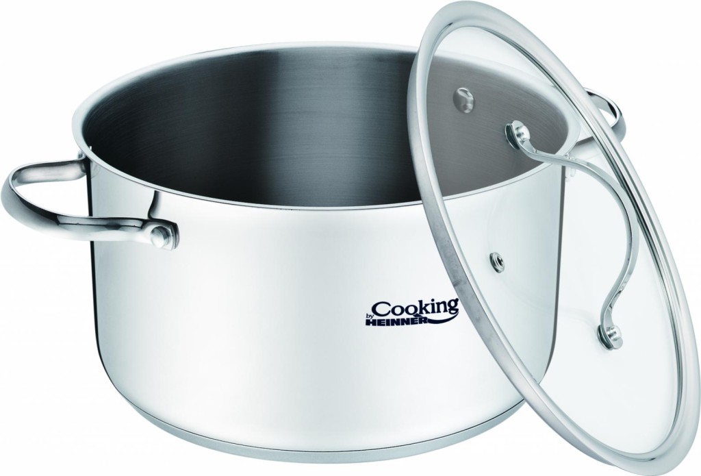 “6 PIECE STAINLESS STEEL COOKING SET, ANNA; 16×9.5 cm casserole+lid, 1.8L; 20×11.5 cm pot+lid, 3.5L; 24×13.5 cm pot+lid, 6L; Material: stainless steel + heat-resistant glass lid; 5-layer encapsulated base with Induction”