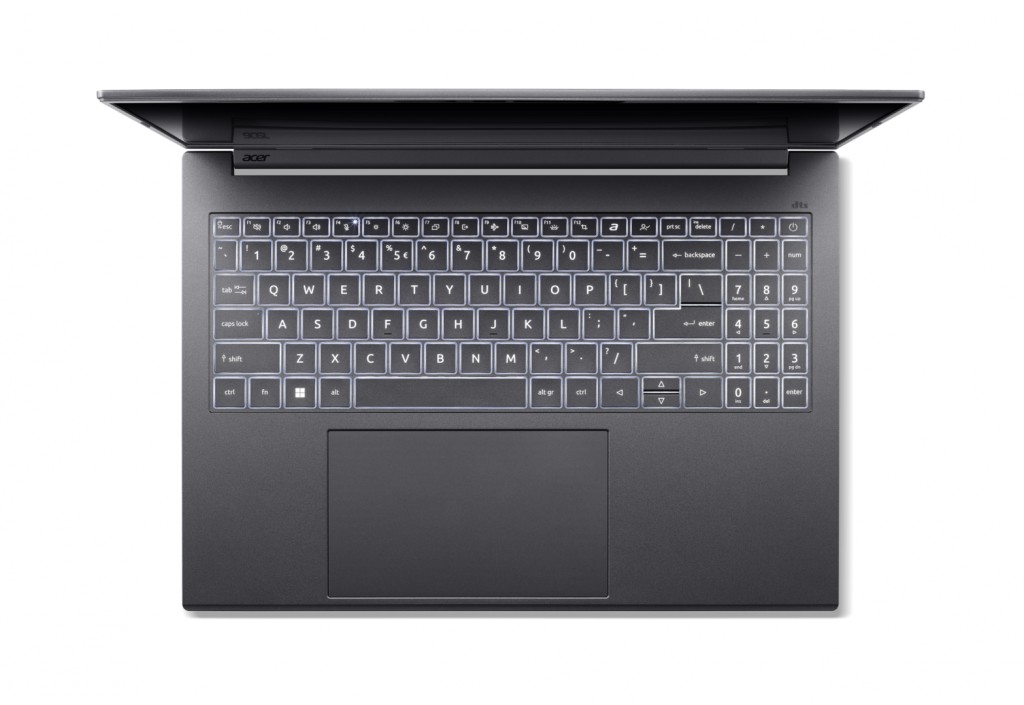 Laptop Acer Aspire 16 AI OLED A16-61M-R7Q1, 16 inches (40.64 cm), Acer CineCrystal™ WUXGA+ OLED 120Hz display with 100% DCI-P3 / Adobe RGB color space, 2048 x 1280, 16:10, AMD Ryzen™AI 7 350 processor, 2.0 GHz base clock (Up to 5.0 GHz max. performance clock rate), 16MB, 8 / 16, AMD Ryzen™ AI (bis zu 50 TOPS), video AMD Radeon™ 860M, RAM 32 GB LPDDR5X RAM (1 x 32 GB LPDDR5X RAM), Onboard RAM (not replaceable or expandable), SSD 1TB PCIe Gen4 NVMe Solid-State-Drive (SSD), no ODD, MicroSD Card reader, Two built-in stereo speakers, three built-in microphones, FHD Webcam, No LAN, WLAN Wi-Fi 6E (802.11 ax), Bluetooth® 5.3, No Fingerprint reader, Ports: 2x (2x Type-A Gen 1 (1x with Power-Off USB Charging)); 2x (USB Type-C); 1x (HDMI 2.1); Displayport via USB Type-C; No Ethernet (RJ-45); 1x 3.5 mm speaker/headphone/line-out (supports headsets with integrated microphone), 100W power adapter (50% PCR-plastic), Li-Ion battery (3 cells / 65Wh), TBD, Backlit keyboard, Steel Gray, Weight 1.49 kg, Dimensions 354.9 x 250.1 x 15.9 mm (W x D x H), No OS (Boot-up only)
