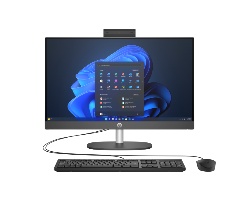 All-in-One HP ProOne 240 G10 23.8 inch Non-Touch IPS FHD (1920×1080) Anti-Glare LED UWVA 250 nits, Intel Core Ultra 7 155U 12-Core (2.1GHz, up to 4.8GHz, 12MB), integrated video Intel Iris Xe Graphics, RAM 16GB DDR5 5600MHz (1x16GB), SSD 512GB M.2 2280 PCle NVMe, No ODD, LAN 10/100/1000, Realtek RTL8851BE Wi-Fi 6 + Bluetooth 5.3, ports: 1x USB Type-C 5Gbps/ 1x HDMI 1.4/ 1x RJ-45/ 2x USB Type-A 5Gbps/ 2x USB Type-A 480Mbps/ 1x Headphone/microphone, slots: 1x M.2 2230/ 1x M.2 2280/ 1x SATA Storage, Fixed Stand, HP 125 Black Wired Keyboard, HP 125 Black Wired Mouse, Integrated Speaker, Camera (pull-up) 5 MP, Source 90W, Iron Gray, weight 5.37 Kg, Free DOS, 1yw