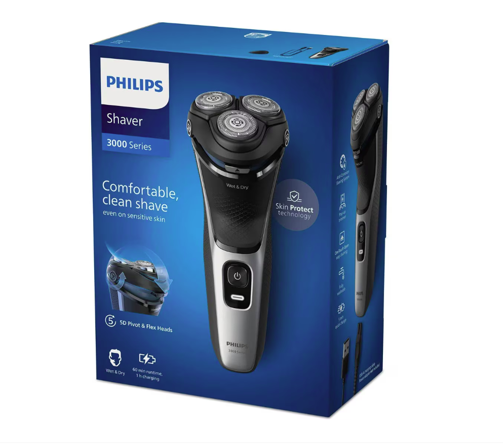 Aparat de ras electric, PHILIPS, seria 3000 S3143/00, Argintiu/Negru