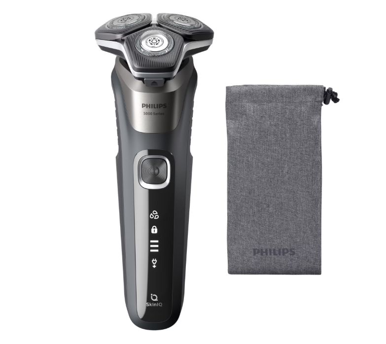 Aparat de barbierit PHILIPS Shaver Seria 5000 S5887/10, barbierit umed/uscat, tehnologie SkinIQ, fara fir, capete flexibile 360°, display LED, senzor Power Adapt, lame auto-ascutire, lama de tuns integrata, 60 min, husa, Gri carbon