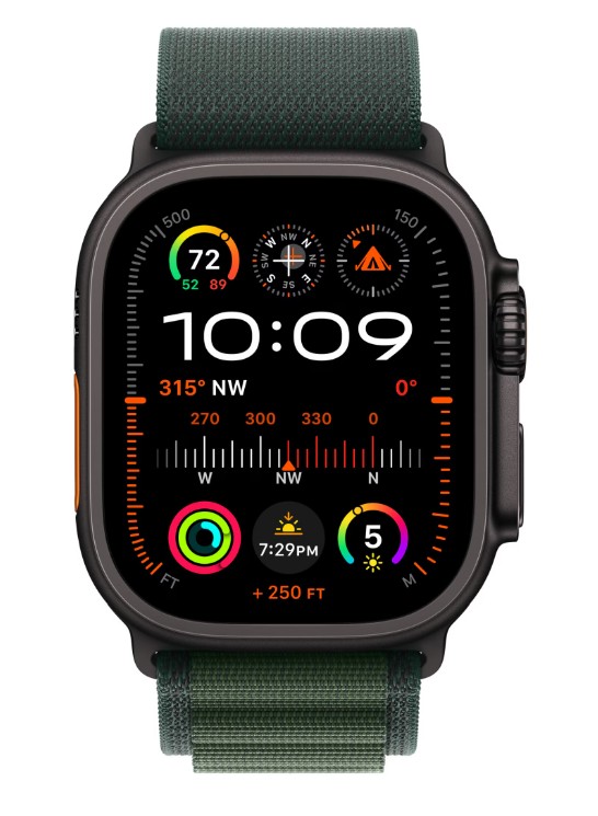 Apple Watch Ultra 2 GPS + Cellular 49mm Black Titanium Case with Dark Green Alpine Loop – Small