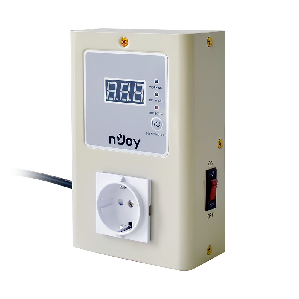 AVR nJoy Royer 16A Phases Single-phase / three-phase Maximum amperage 16A Accepted input voltage 175V – 250V Nominal frequency 50/60Hz Protections Undervoltage interruption– 175V Undervoltage reconnection– 185V Overvoltage interruption— 250V Overvoltage reconnection– 245V Delay function at start-up 180s Screen LCD screen Output socket 1 x Schuko Other characteristics Suitable for air conditioning units up to 12,000 Btu Suitable for refrigerators, freezers, VISI coolers, TV, etc. Automatic disconnection / reconnection in case of overvoltage Automatic disconnection / reconnection in case of undervoltage start-up delay eliminates transient voltages that can affect the operation of equipment Digital screen and LEDs Dimensions 115 x 180 x 60 mm Weight 0.8 kg
