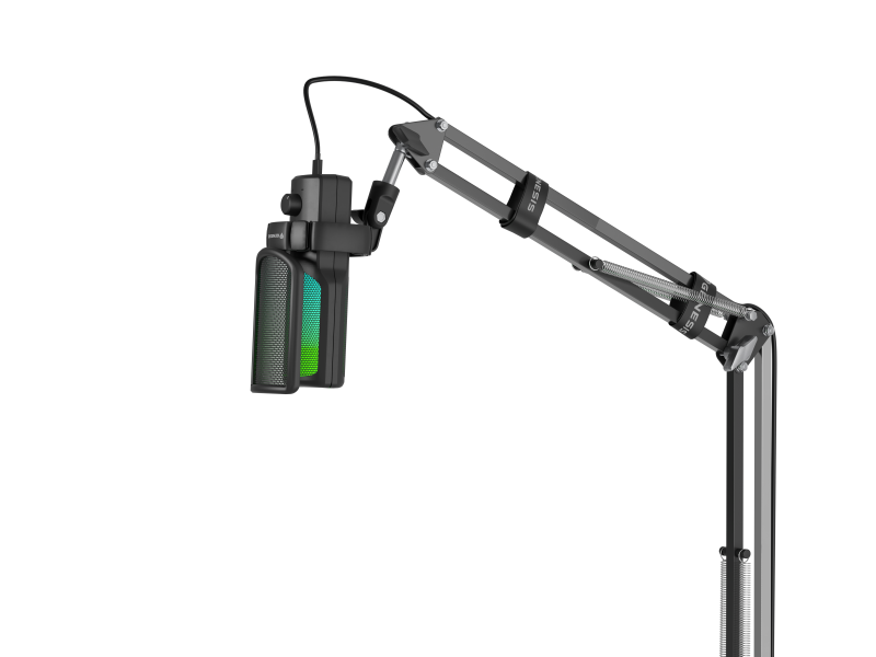 Brat cu microfon Genesis Radium 251, tip Condenser, model cardioid, suport fix, conectivitate USB-C, raspuns in frecventa 50 – 16.000 Hz, sensibilitate 40 dB, lungime cablu 200 cm, negru