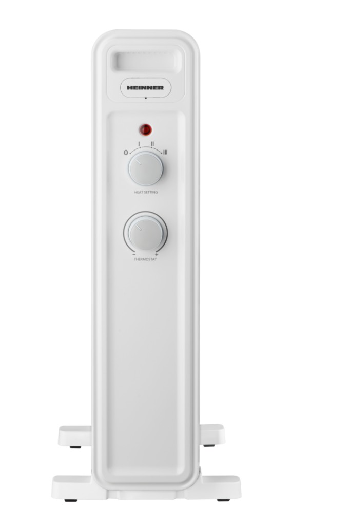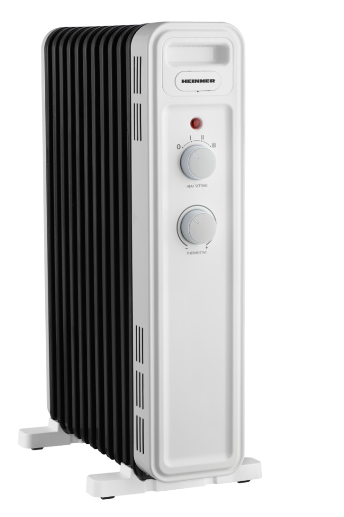 HEINNER HOH-M13WH-BK OIL HEATER, 13 ELEMENTS: 125X545 MM, 3 TEMPERATURE SETTINGS: 1000W/ 1500W/ 2500W, ADJUSTABLE THERMOSTAT, OVERHEATING PROTECTION, OVERFLOW PROTECTION, WHEELS, CABLE STORAGE, COLOR: WHITE WITH BLACK