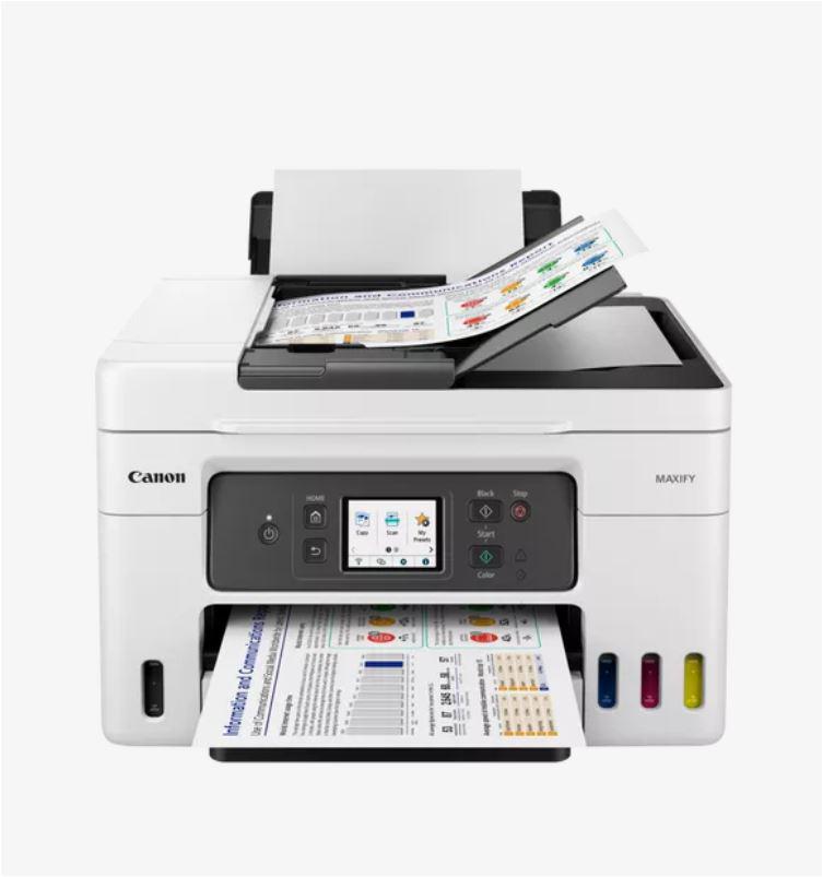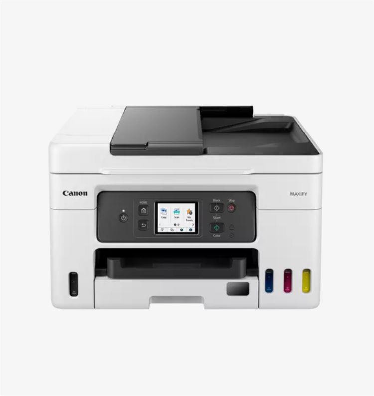Multifunctional inkjet color Canon Maxify GX4040, ( Print, Copy,Scan,Fax, Cloud), dimensiune A4 , duplex printare si scanare, ADF 35 coli, viteza 18 Ipm alb-negru, 13 Ipm color, rezolutie 600X1200 dpi, alimentare hartie 250 +100 coli, Scanner CIS, rezolutie scanare:1200×2400, 99 copii max,zoom:25%-400%, format hartie: A4, A5, B5, Letter – hârtie simplă,Fax Super G3 / Color, interfata: USB, Retea, WIFI, consumabile: GI-46 BK, GI-46 C, GI-46 M, GI-46 Y, cartus mentenenanta MC-G03.2 ani garanție comercială + 1 an suplimentar gratuit, SAU până la 30.000 de pagini imprimate.