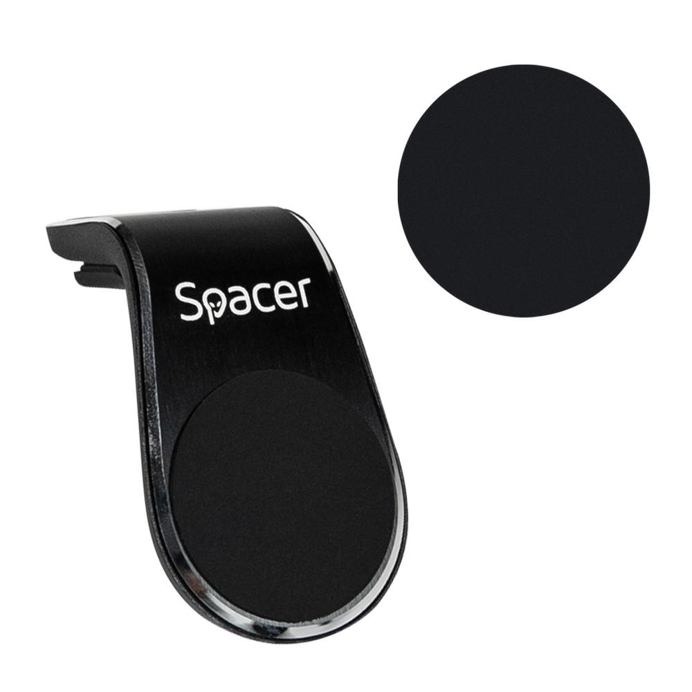 Spacer car holder for smartPhone, fixed in dashboard grille, 360 degree magnetic phone holder, black