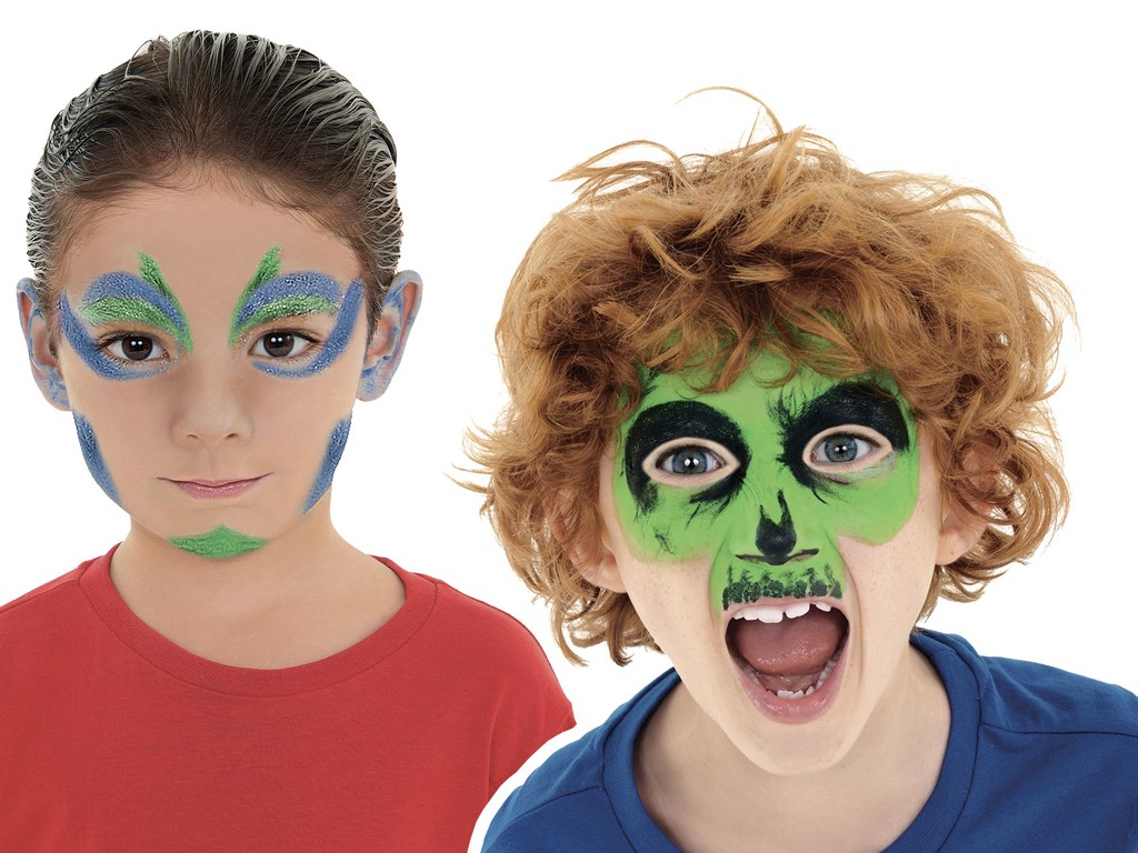 Paperboard box of3 face paint on a stick and two tutorials included in the package ANIMALS