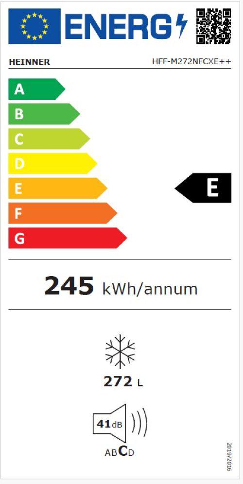 Congelator Heinner HFF-M272NFCXE++, No Frost, capacitate totala: 272L, clasa de eficienta energetica E, functionare convertibila (frigider/congelator), 2 rafturi + 5 sertare, display, control electronic, functie Super congelare, alarma usa deschisa, lumina LED, dimensiuni: 59.5 x 61.8 x 185 cm, Culoare: Aspect inox