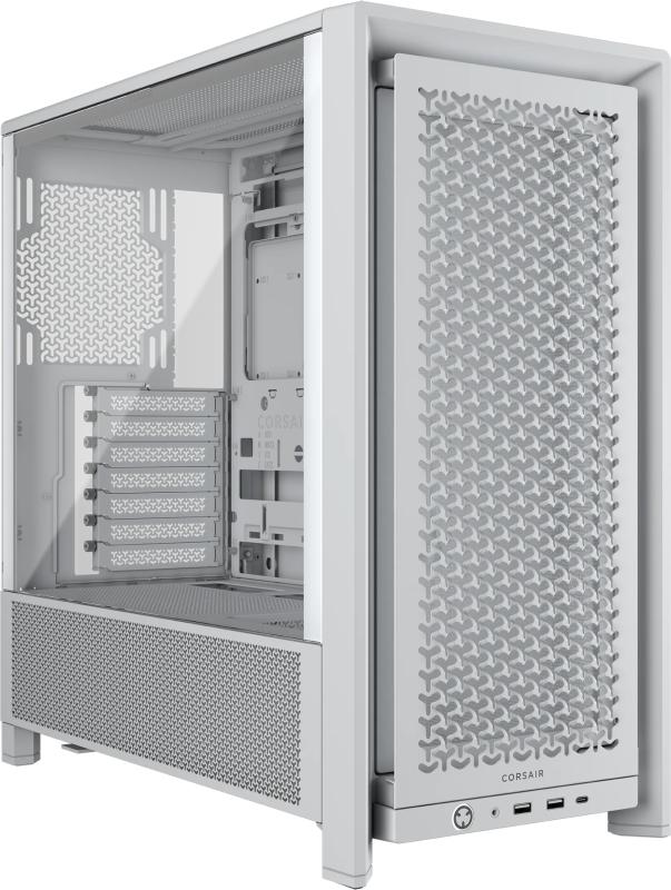 PC Case CORSAIR 4000D Modular Mid Tower WHITE, Tempered Glass, Expansion Slots 7 horizontal or 3 vertical, Drive Bays: 2×3.5″ 4×2.5″, Fans Supported: 9 (rear: 1x120mm or 1x140mm, front: 3x120mm or 2x140mm or 2x200mm, side: 2x120mm or 2x140mm, bottom: 2x120mm), Motherboard Format Supported: Mini-ITX, Micro-ATX, ATX, E- ATX, Maximum Video Card Length: 430mm, Maximum Processor Cooler Height: 170mm