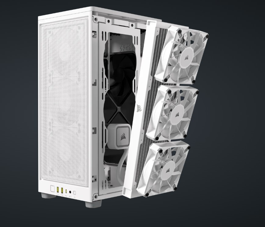 PC Case Corsair 2000D Airflow Mini-ITX, tempered glass panel, 3x 2.5″ drive bays, size 458x271x200, white