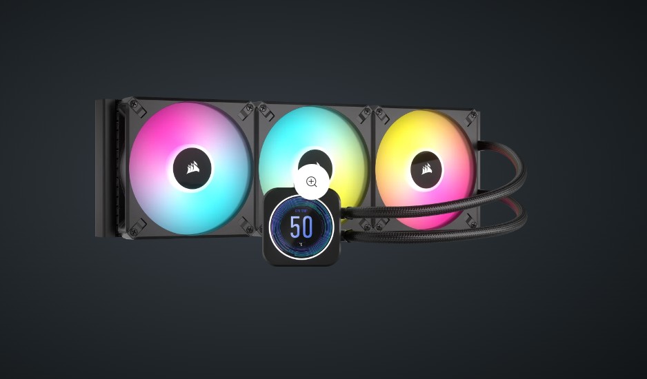 Corsair Liquid Cooler iCUE H170i ELITE LCD XT Radiator Material Aluminum CORSAIR iCUE Compatibility Yes Tubing Length 450mm Coldplate Dimensions 56x56mm Tubing Material Black Sleeved Low-Permeation Rubber Screen Size 2.1″ Native Resolution 480×480 Max Resolution 480×480 Refresh Rate 30Hz Fan Dimensions 140mm x 25mm Fan Speed 500 – 1700 RPM ±10% Number of Fans 3 Cooling Socket Support Intel 1700, 1200, 1150, 1151, 1155, 1156, 1366, 2011, 2066 AMD AM5, AM4, AM3, sTRX4, sTR4 Radiator Size 420mm