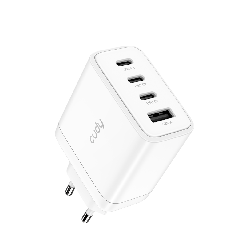 CUDY 4-Port 65W USB-C Charger with EU Plug, GaN, 3 x USB-C (65W max),1 x USB-A (30W max ),QC+PPS+PD 3.0, EU plug, Fast charge for iPhone 12 Series and above, Galaxy, iPad, Macbook and more