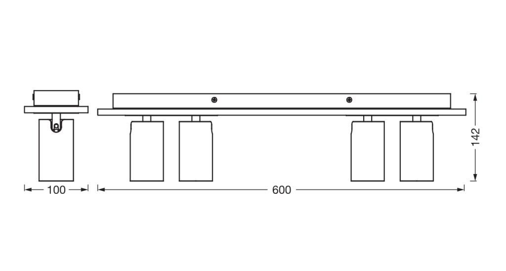 Quadruple adjustable LED spotlight Ledvance DECOR MERCURY, 4xGU10, 4×3.4W, 920 lm, warm light (2700K), dimmable, IP20, 600mm, White, energy class G