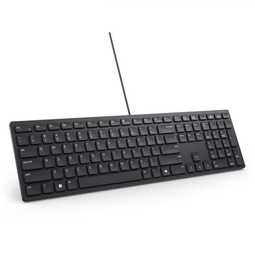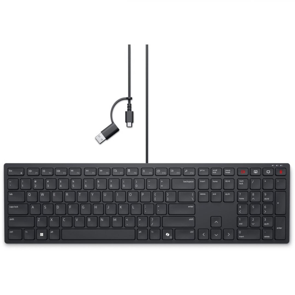 Dell Wired Collaboration Keyboard – KB525C – US International (QWERTY), Keyswitch Technology: Plunger, Keyboard/Keypad Connectivity Technology: Cable, Keyboard/Keypad Features: Quiet Keys, Spill Resistant, Low- profile Keys, Adjustable Tilt, Illuminated, Hot Keys: 15 Programmable keys : F1-F12, Prt Sc, Scroll Lock, Pause Break, Localization: US International (QWERTY), Security Algorithms: 256-bit AES, Keyboard/Keypad Host Interface: USB Type C, Power Source: USB, Product Colour: Black, Keyboard/Keypad Height: 26.16 mm, Keyboard/Keypad Width: 122.17 mm, Keyboard/Keypad Length: 432.82 mm, Weight (Approximate): 458.1 g, Package Contents: Wired Collaboration Keyboard – KB525C, USB-C Cable with USB-A Adapter, Documentation, Operating System Compatibility: Windows 7, Windows 8.1, Windows 10, Windows 11, Mac OS, Red Hat Enterprise Linux 8, Ubuntu 18.4, ChromeOS, Android, Post-consumer-waste: 65%, Limited Warranty: 3 Years