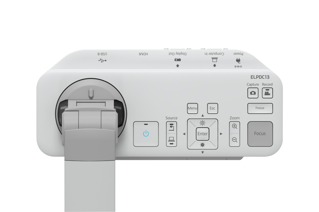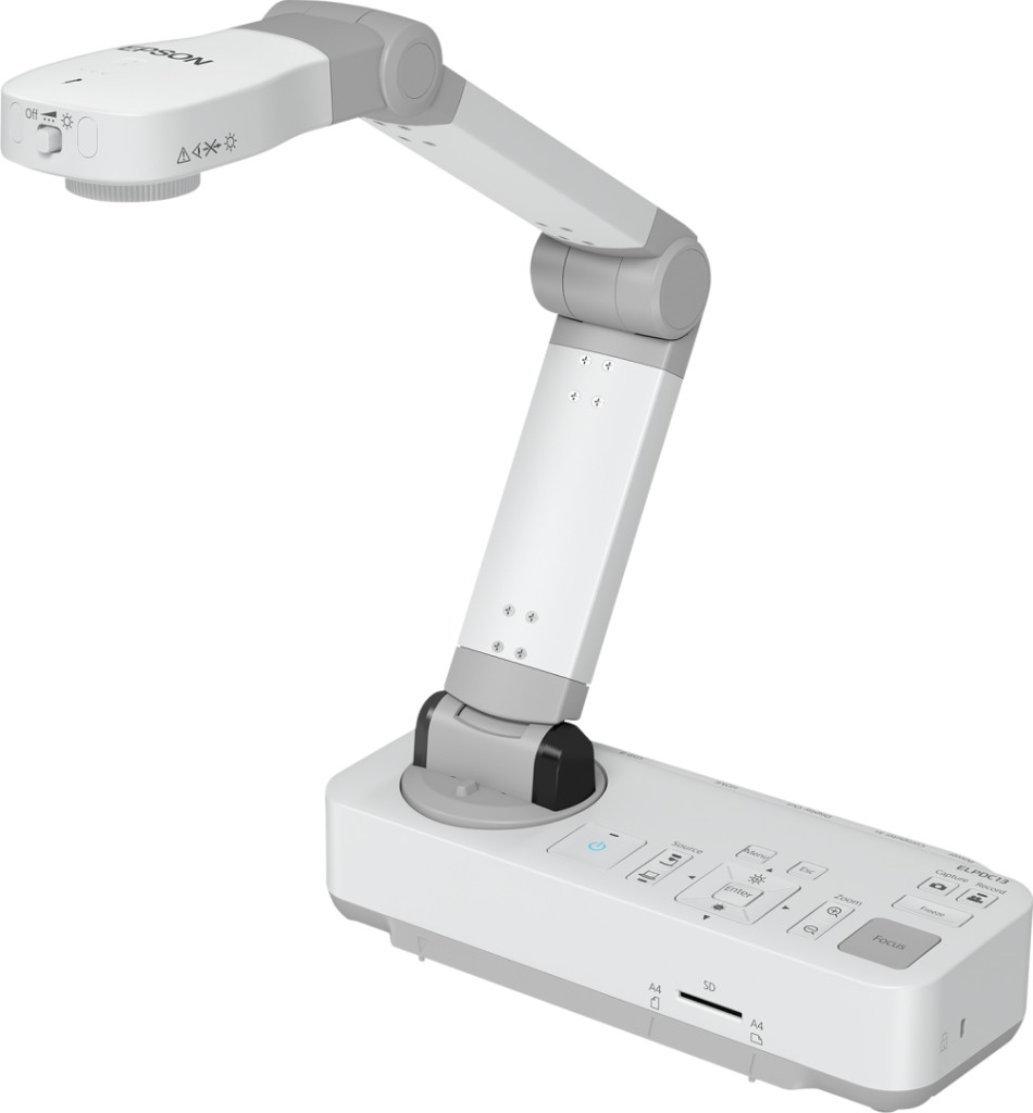 DOCUMENT CAMERA EPSON ELPDC-13, Sensor: cmos1/2.7″, Resolution: 1920 x 1080 (HD 1080), 30fps, Digital zoom: 16x, scanning range: 297 x 420 mm, Interface: USB Type-B, VGA, SD max 32Gb, Max format: A3, Color: White, microscope mode.