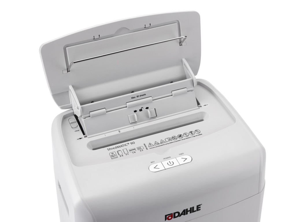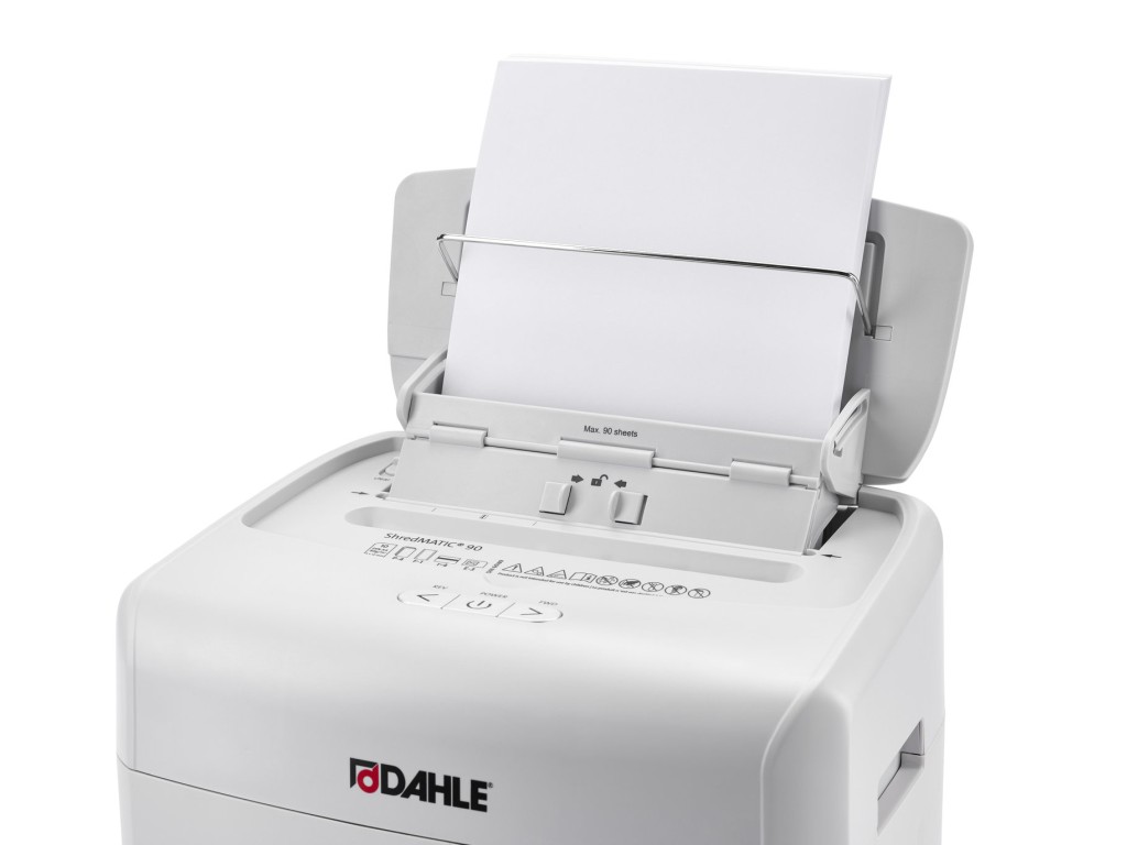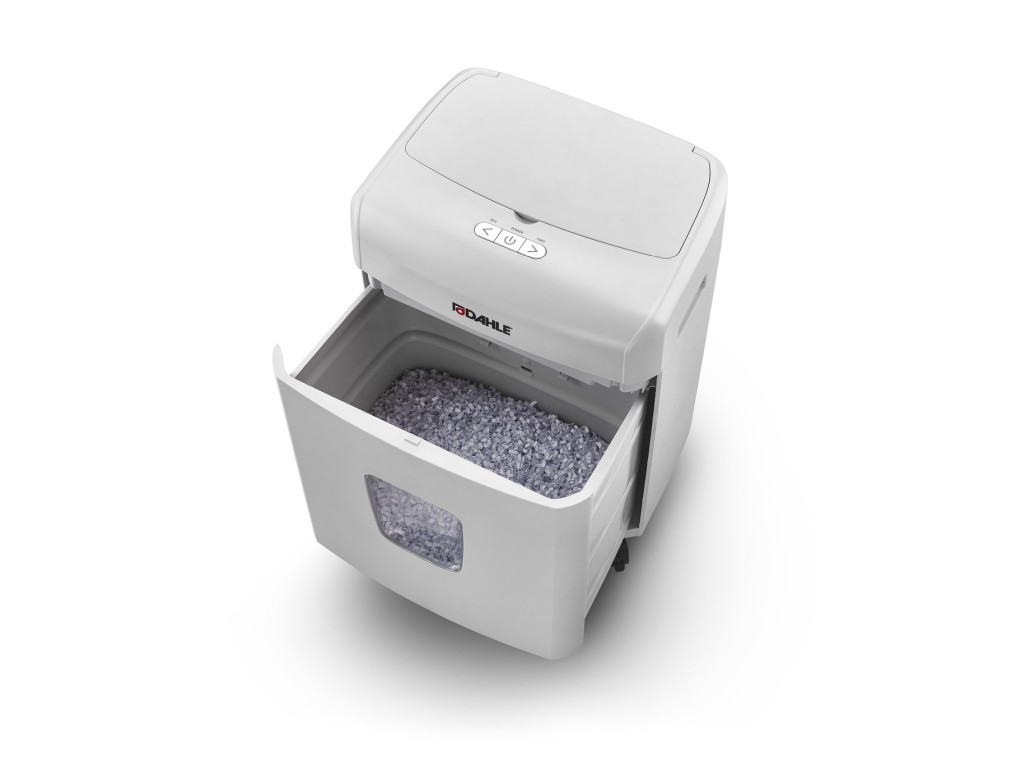 Office shredder with auto-feeding recommended for normal use, with security level P4 – cut confetti 4×12 mm, with a capacity of 10 sheets manually / 90 sheets automatically at an opening of 222mm (A4). Destroy cards and occasionally small staples. Equipped with integrated system for starting and stopping the destroyer, ensuring fast availability and safe use. The low noise (62db) and the volume of the basket of 23 liters recommend it for small offices. It is easy to move due to the small wheels and is provided with a window to view the filling level. Exterior dimensions (h x W x H): 506 x 367 x 263 mm