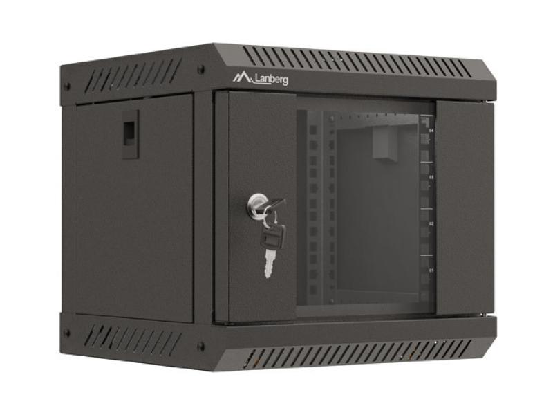 Dulap rack 10″ perete 4U / 300×300 (flat pack) cu ușă din sticlă, negru