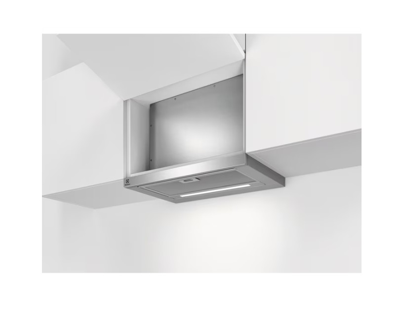 Telescopic built-in hood; Series 600; 60 cm; 1 motor; 3 speeds; 2 washable aluminum filters; Suction power – 600 mc/h; Stainless steel