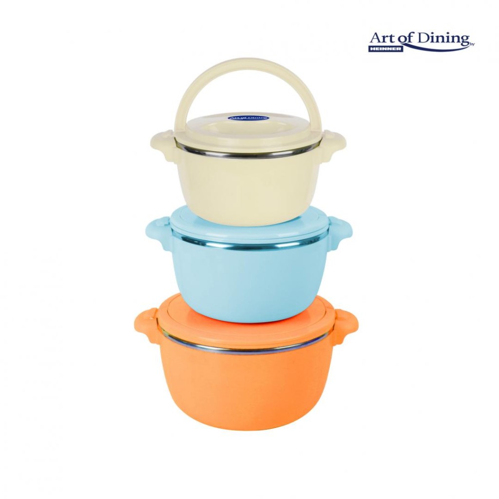 BELLY ORANGE, FOOD WARMER 3 PCS SET: 2+4+6L; FOLDABLE LOCK DESIGN; Keeps food hot/cold for 3-4 hours; Inside: stainless steel 201; Outside: polypropylene; between the walls: expanded polystyrene