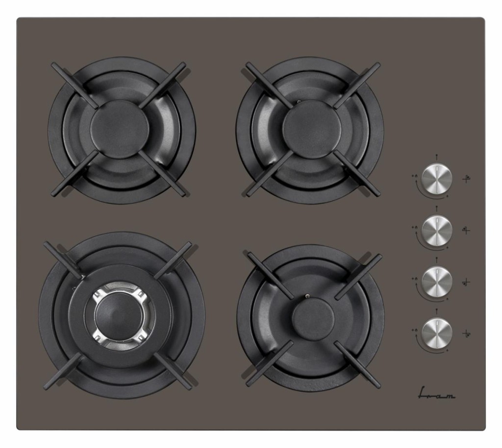 FRAM FBH-V4IWF-GMK BUILT-IN HOB, GAS, 4 BURNERS, WOK, CAST IRON GRILL, SIDE CONTROL, ELECTRIC IGNITION, SAFETY DEVICE, LPG NOZZLES INCLUDED, DIMENSIONS (LXA): 59X52 CM, COLOR: GLASS BROWN MINK