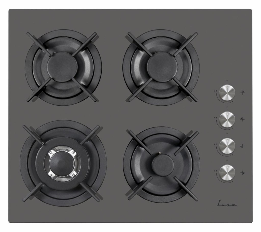 FRAM FBH-V4IWF-GVG BUILT-IN HOB, GAS, 4 BURNERS, WOK, CAST IRON GRILL, SIDE CONTROL, ELECTRIC IGNITION, SAFETY DEVICE, LPG NOZZLES INCLUDED, DIMENSIONS (LXA): 59X52 CM, COLOR: VICTORIA GRAY GLASS