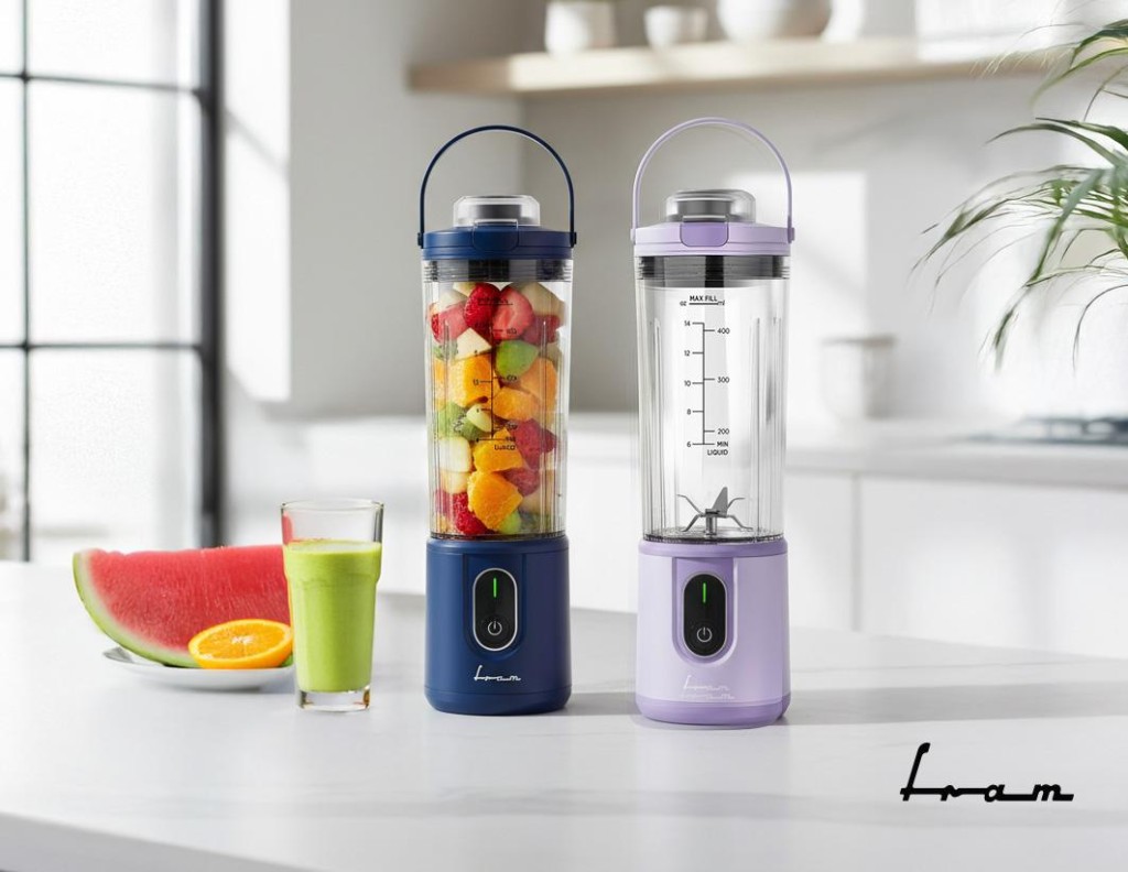 FRAM FBP-P74PP PORTABLE BLENDER, 7.4V BATTERY, 10-15 MIN BATTERY LIFE, 400ML BPA-FREE TRITAN CONTAINER, STAINLESS STEEL BLADE, ON/OFF BUTTON, AUTOMATIC SHUT-OFF, INTERNAL LED LIGHT, NON-STICK BASE, PURPLE