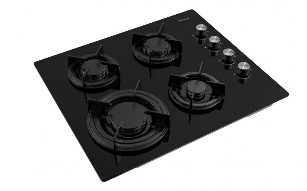 FRAM FBH-M4IRF-GBK BUILT-IN HOB, GAS, 4 BURNERS, CAST IRON GRILL, SIDE CONTROL, ELECTRIC BURNER, SAFETY DEVICE, LPG NOZZLES INCLUDED, DIMENSIONS (LXA): 60X51 CM, COLOR: BLACK GLASS