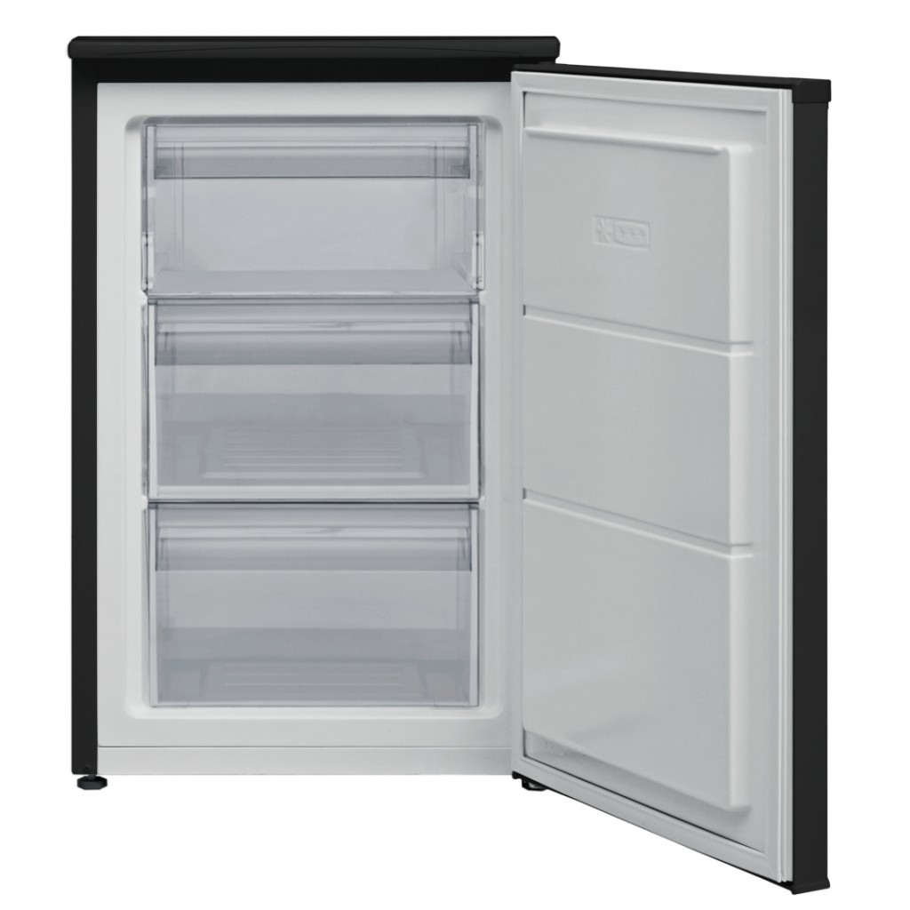 Freezer Heinner HFF-V102BKE++, energy class: E, total capacity: 103L, mechanical control with adjustable thermostat, 3 freezer compartments, reversible door, freezing capacity: 5.2kg/ 24h, dimensions (WxDxH): 54 x 61.5 x 83.8 cm, color : Black with chrome decoration on the handle