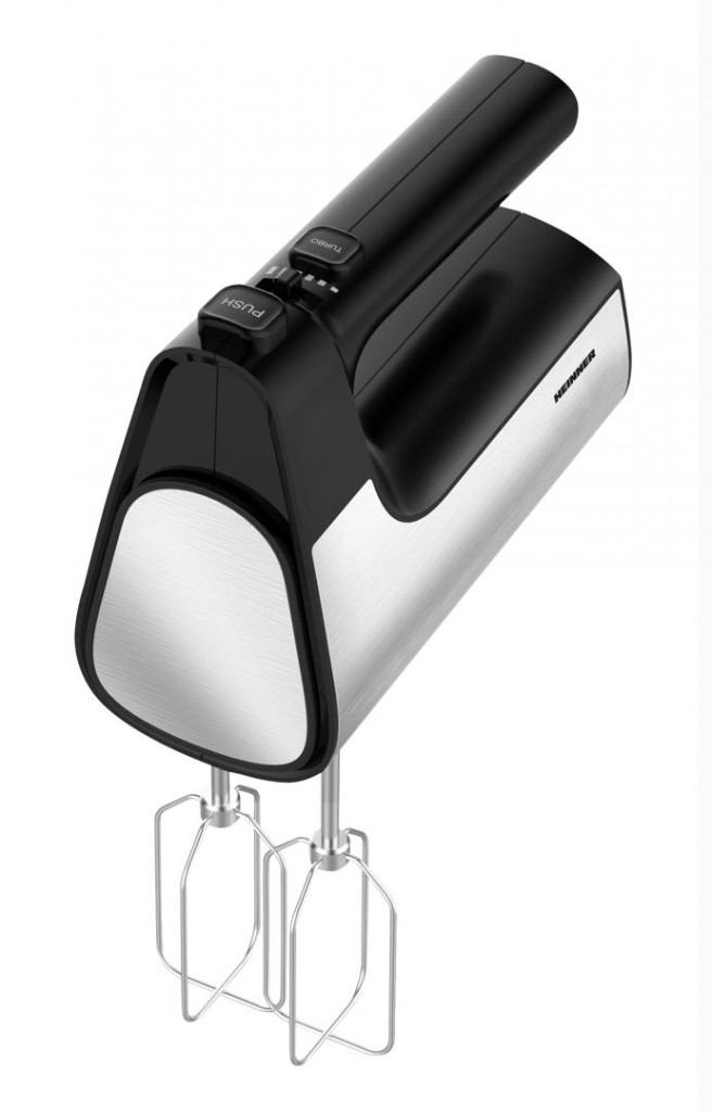 HAND MIXER HEINNER HM-500BKSS, 500W, VARIABLE SPEED, ACCESSORIES: STAINLESS STEEL BLENDERS AND HOOKS, BLACK WITH STAINLESS STEEL DECORATIONS