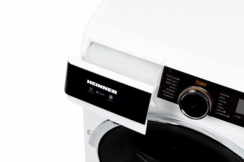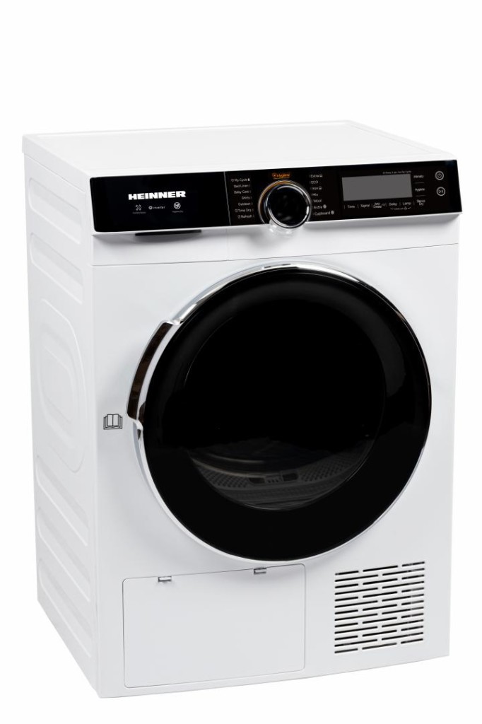 HEINNER HEAT PUMP CLOTHES DRYER HHPD-M10K3A+++, LOAD CAPACITY 10KG, ENERGY CLASS A+++, INVERTER MOTOR, 14 PROGRAMS, TOUCH CONTROL, DIGITAL DISPLAY, BABY CARE PROGRAM, WOOL PROGRAM, STERILIZATION PROGRAM, ANTI-SIPHONATION FUNCTION, FAVORITE PROGRAM MEMORY, TUBE LIGHT, DRYING LEVEL SELECTOR, LACK FILTER CLEANING INDICATOR, FULL WATER TANK INDICATOR, CHILD ACCESS LOCK, DIMENSIONS (LXWXH): 59.5X67.5X84.5 CM, COLOR: WHITE