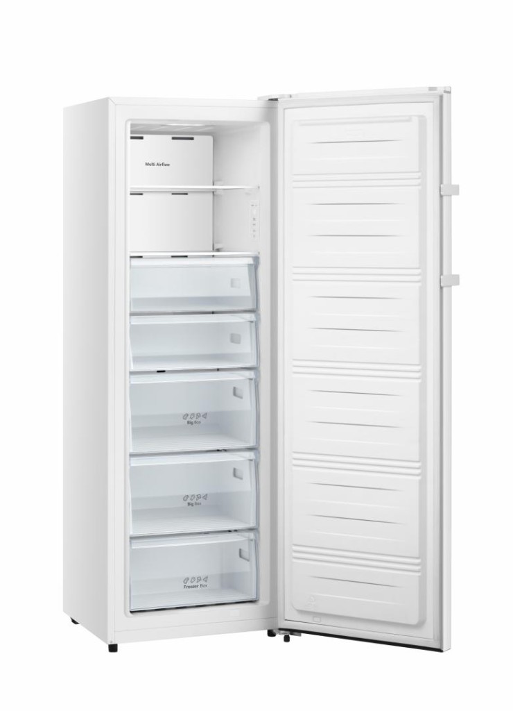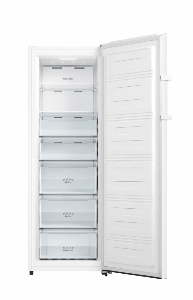 Freezer Heinner HFF-HS240NFE++, Full No Frost, Multi Air Flow system, energy class: E, total capacity: 240L, electronic control with display, “Quick Freeze” function, ECO function, 7 freezer compartments: 5 drawers + 2 compartments with shelves made of glass, LED light, door open alarm, child lock, reversible door, ice cube tray, freezing capacity: 10.8 kg/24h, dimensions (WxDxH): 59.5 x 59 x 172 cm, color: White