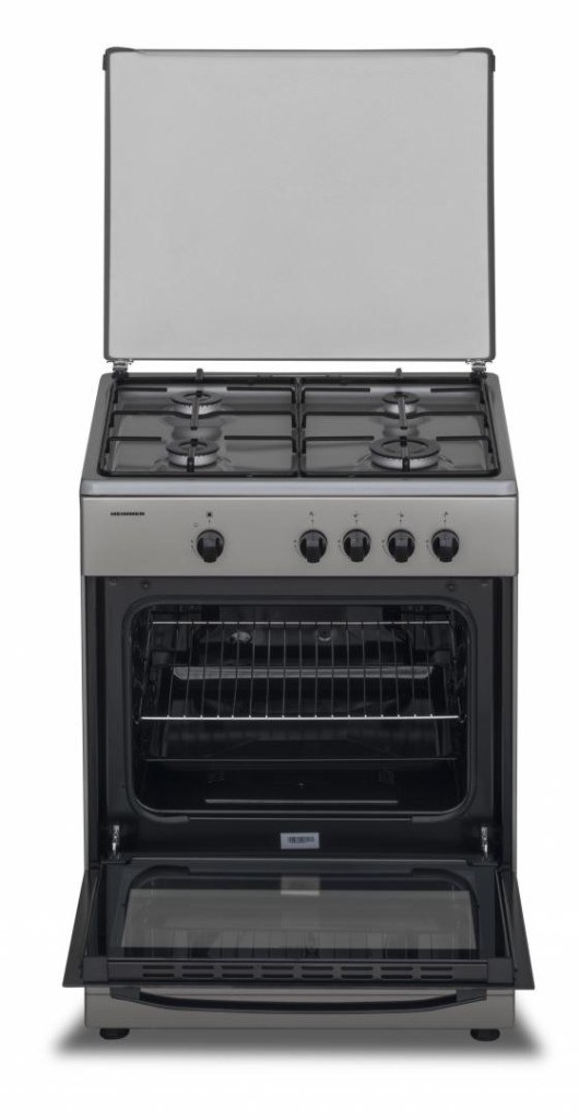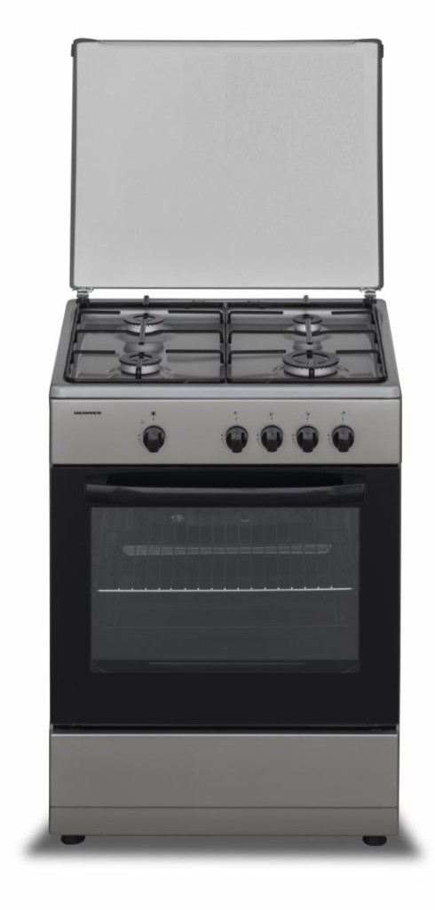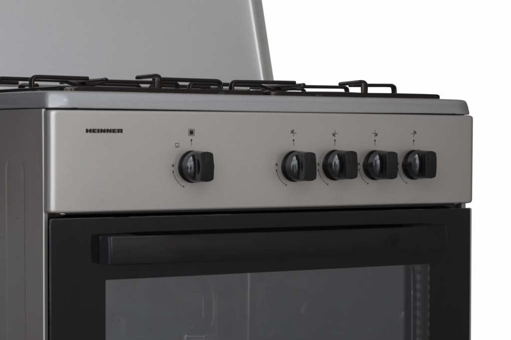 HEINNER GAS STOVE HFSC-SME60SL, 60X55CM, 4 BURNERS, ENAMEL SUPPORT, METAL LID, HOB AND OVEN SAFETY DEVICE, OVEN DOOR WITH DOUBLE GLASS, LPG NOZZLES INCLUDED, CHROME TRAY AND GRILL, COLOR: SILVER