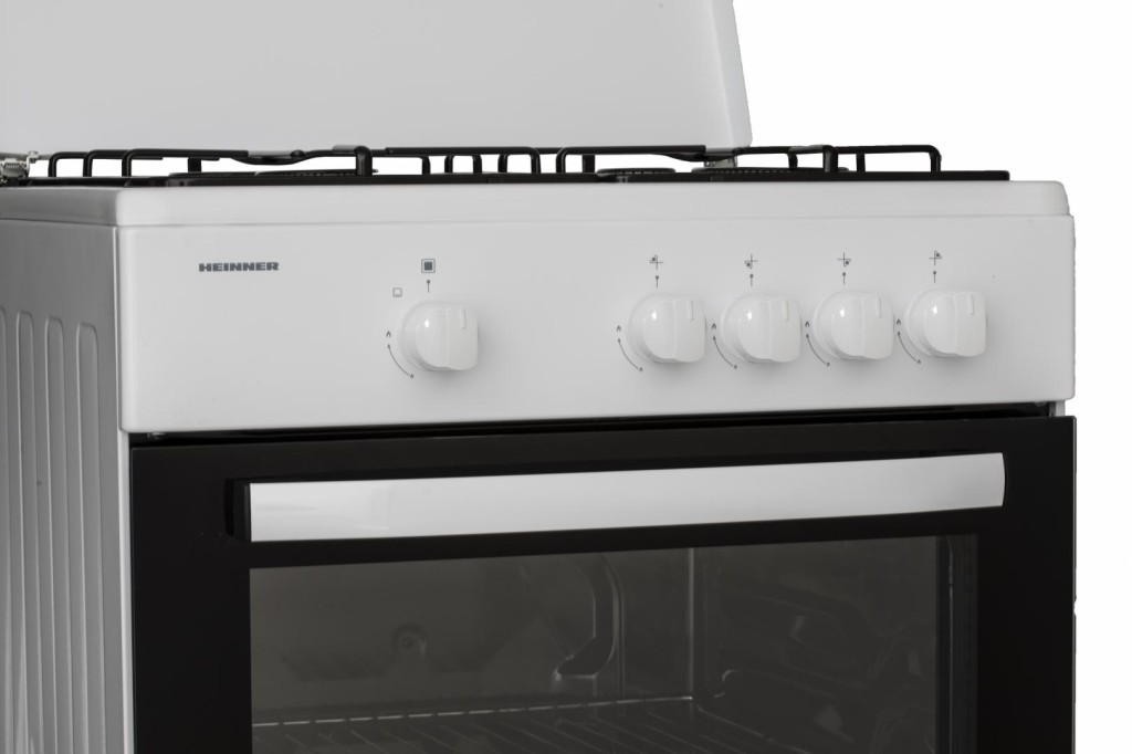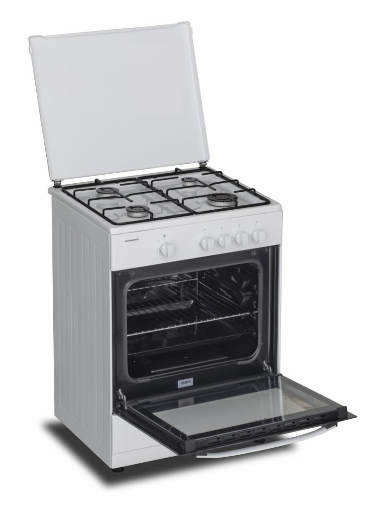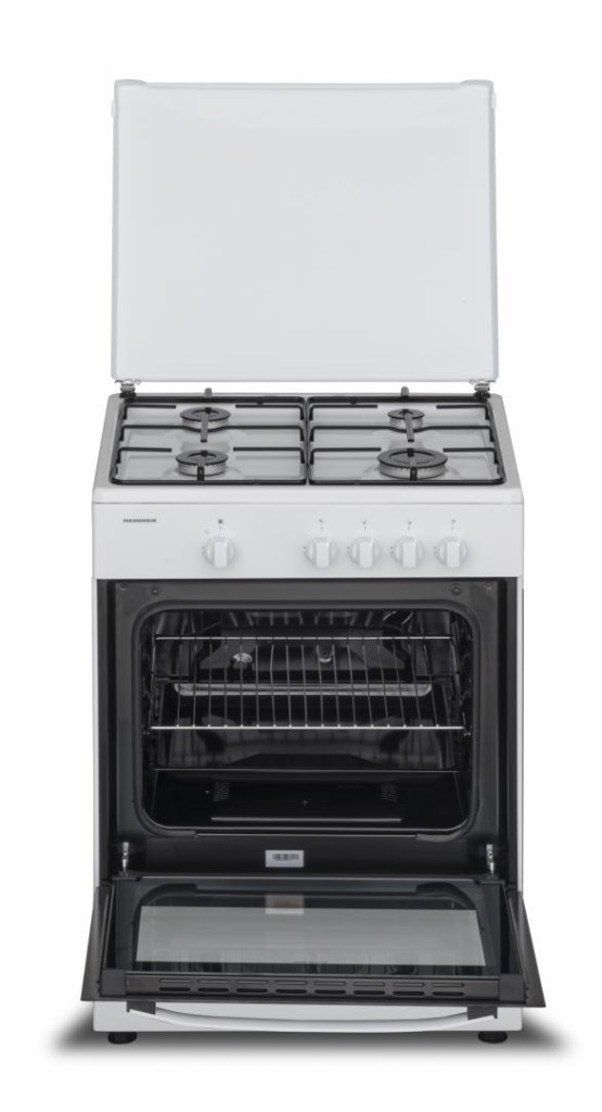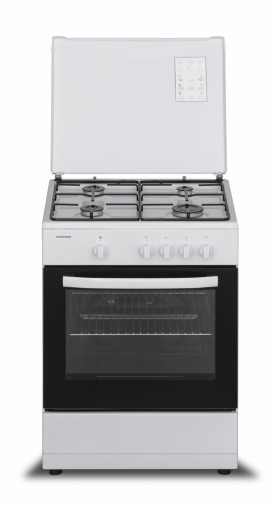HEINNER GAS STOVE HFSC-SME60WH, 60x55CM, 4 BURNERS, ENAMEL SUPPORT, METALLIC LID, HOB AND OVEN SAFETY DEVICE, OVEN DOOR WITH DOUBLE GLASS, LPG NOZZLES INCLUDED, CHROME TRAY AND GRILL, COLOR: WHITE