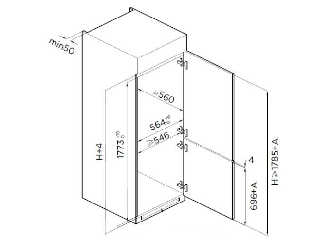 Heinner HC-BIM271INVE++ built-in refrigerator, Low Frost cooling system, energy class E, compressor Inverter, total capacity: 271 L, refrigerator capacity: 192 L, freezer capacity: 79 L, control panel with LED indicators, electronic control, refrigerator fan, Super cooling function, Super freezing function, LED light, fruit and vegetable compartment, 3 refrigerator glass shelves, 2 freezer drawers + pizza tray, reversible doors, freezing capacity: 3.6kg/24h, dimensions (WxHxD): 54 x 55 x 178.5 cm