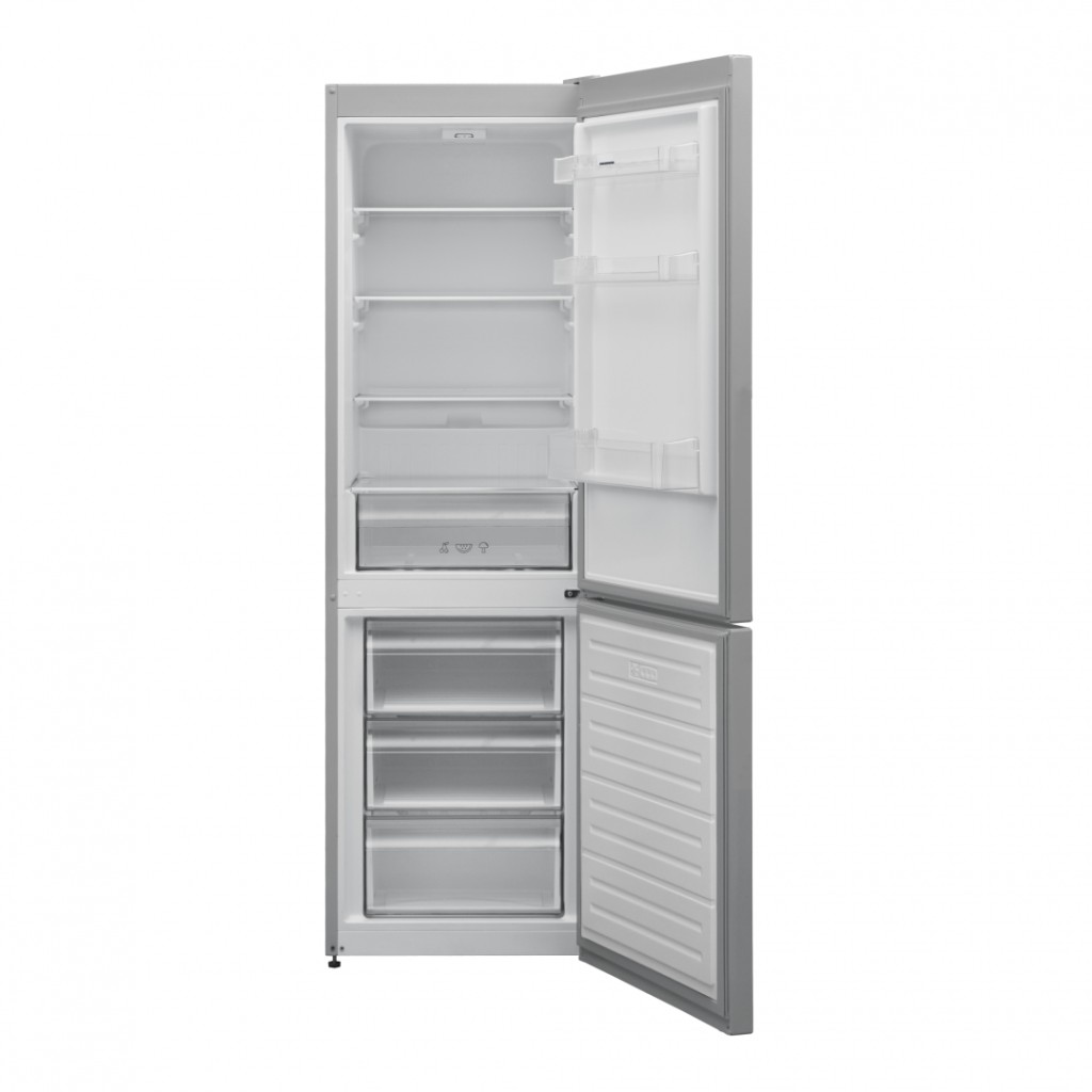 Heinner HC-V341XE++ refrigerator, energy class: E, Less Frost cooling system, total capacity: 340L, refrigerator capacity: 233L, freezer capacity: 107L, mechanical control with adjustable thermostat, LED light, “Super Freeze” function, 3 shelves glass refrigerator, fruit and vegetable compartment with humidity control, 3 freezer drawers, reversible doors, egg holder, ice cube tray, freezing capacity: 5.2kg/24h, dimensions (WxDxH): 59.5 x 65 x 186 cm, stainless steel appearance with decoration chromed on the handle