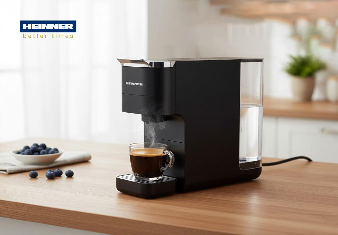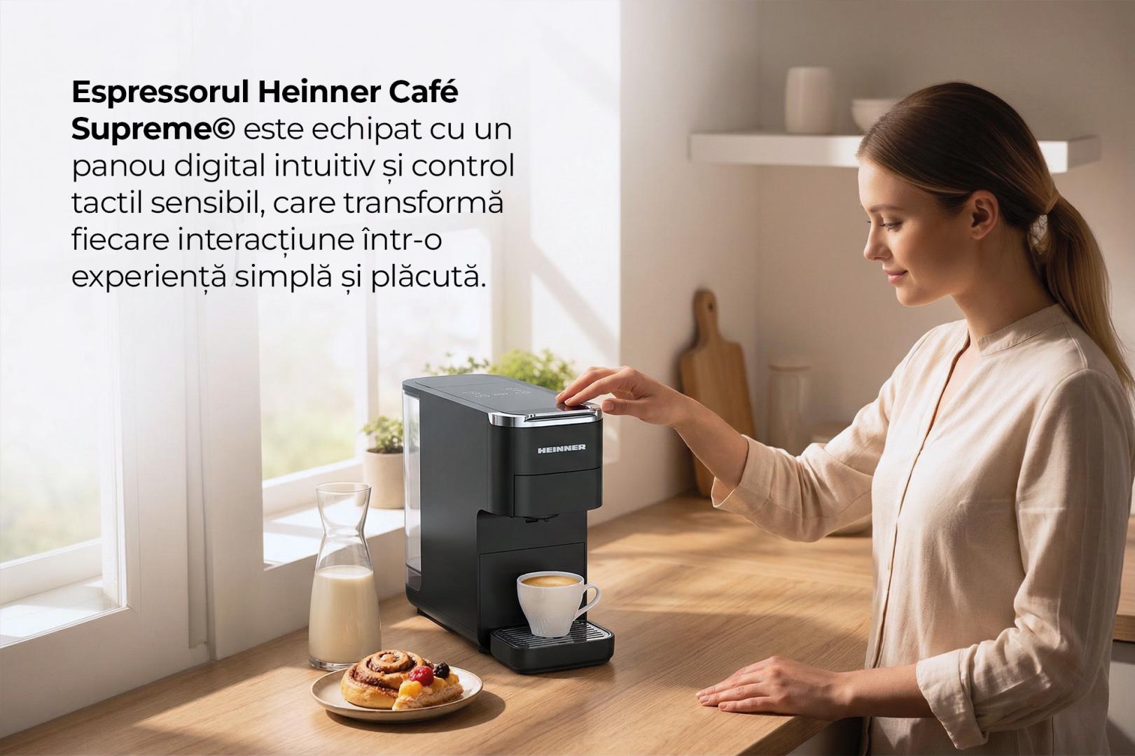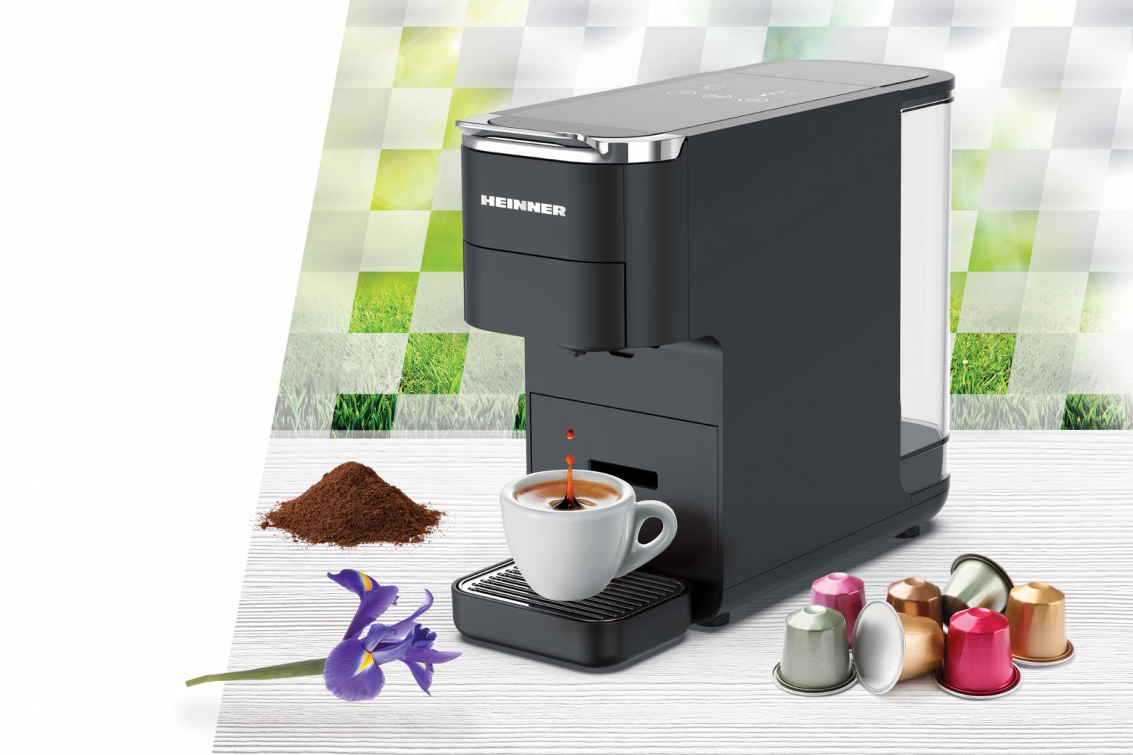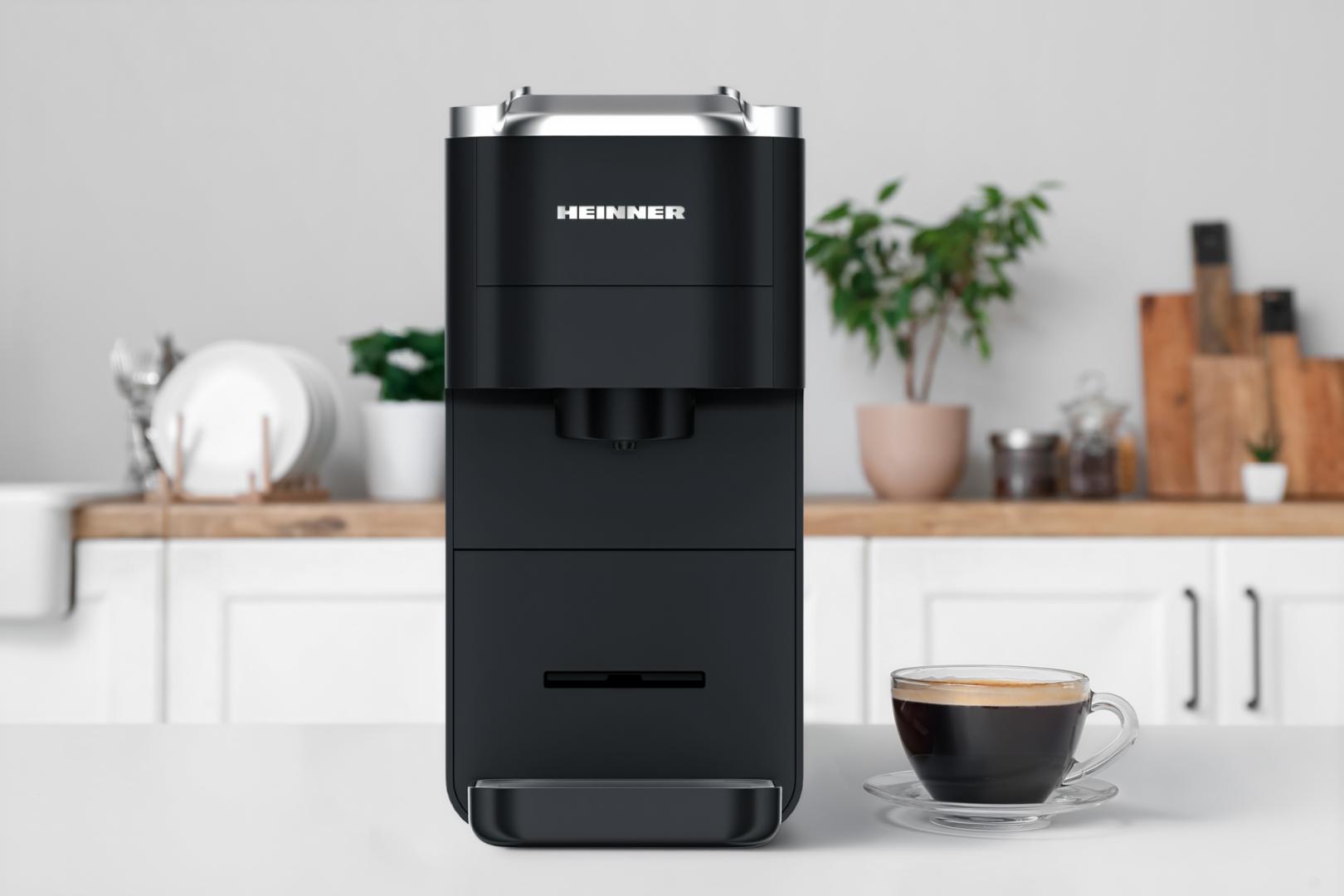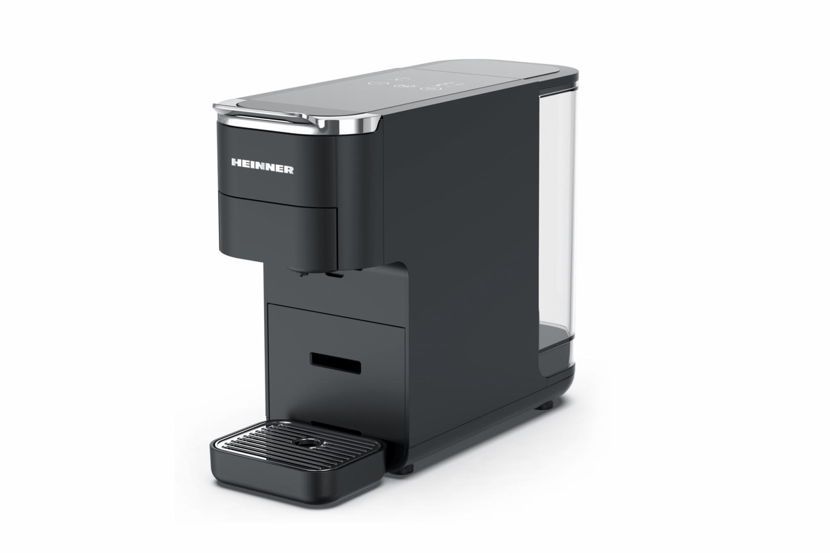 ESPRESSO WITH CAPSULES HEINNER CAFE SUPREME HEMC-DD15BK, 1400-1525W, DIGITAL SCREEN AND TOUCH CONTROL, COMPATIBLE WITH NESPRESSO, DOLCE GUSTO, ESE PODS/POWDERED COFFEE, INTELLIGENT CAPSULE TYPE DETECTION SYSTEM, LIGHT INDICATOR FOR CAPSULE TYPE AND VOLUME, WATER TANK: 1.5L, PREHEATING: 45SEC, TEMPERATURE CONTROL SYSTEM, METAL HANDLE, CAPSULE STORAGE COMPARTMENT, HEIGHT ADJUSTABLE DRIP TRAY, BLACK