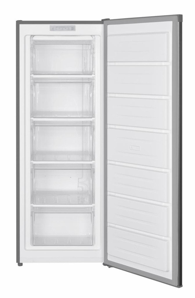 Heinner HFF-HM168XE++ freezer, energy class: E, total capacity: 168L, electronic control, display with LED indicators, 5 freezer compartments, Super freeze function, manual defrost, reversible door, freezing capacity: 7.8 kg/24h, dimensions: 54.4 x 57.1 x 142.6 cm, color: Stainless steel appearance