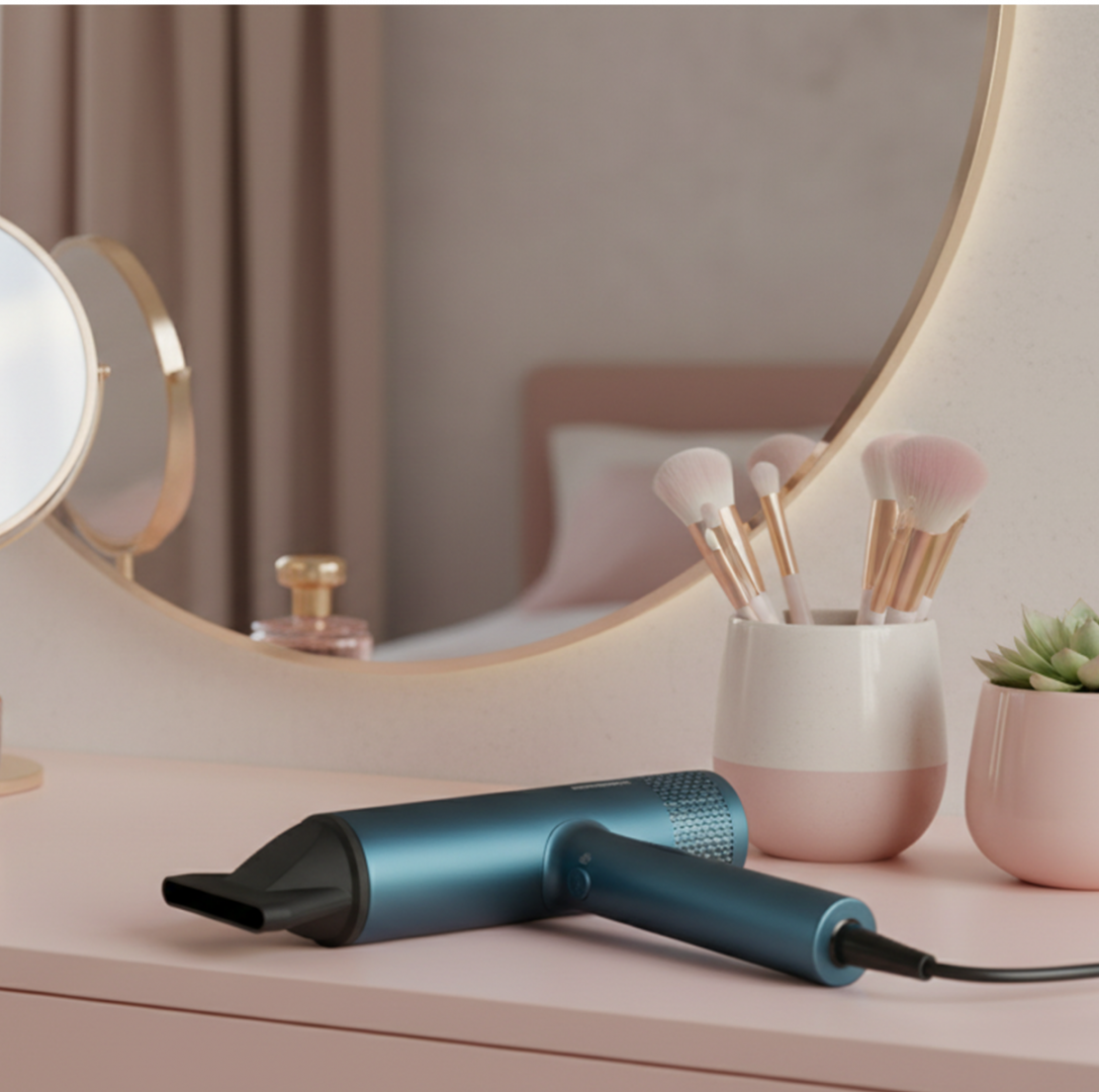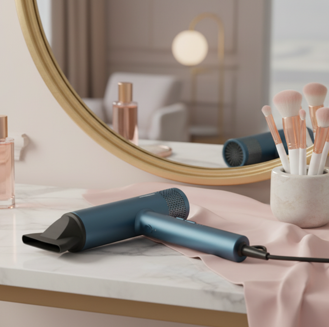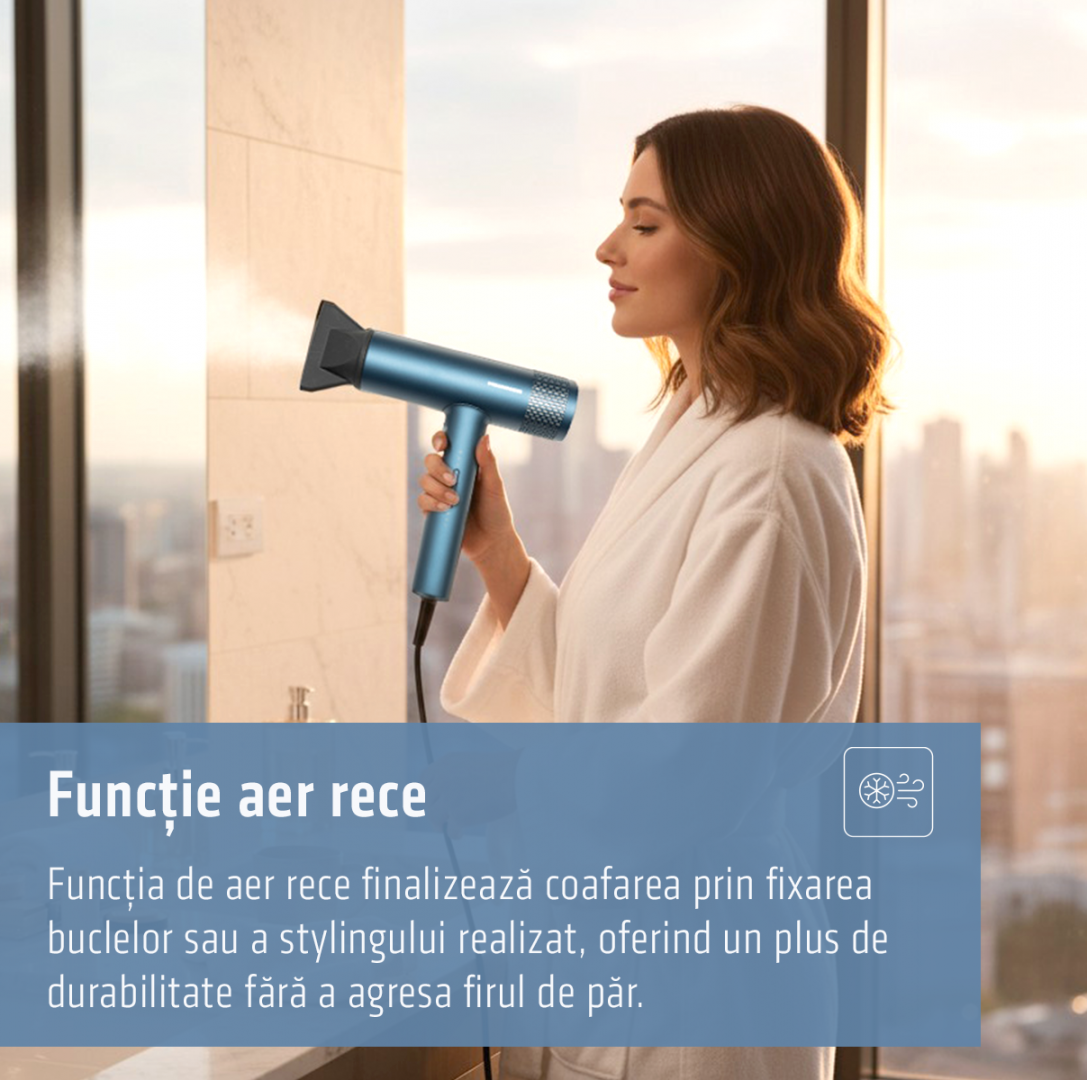 Heinner HHD-Y18BLDC-BL hair dryer, BLDC motor, power: 1800 W, 3 power levels, 3 temperature settings, ionization, cold air function, magnetic concentrator, magnetic diffuser, removable filter protection, color: blue
