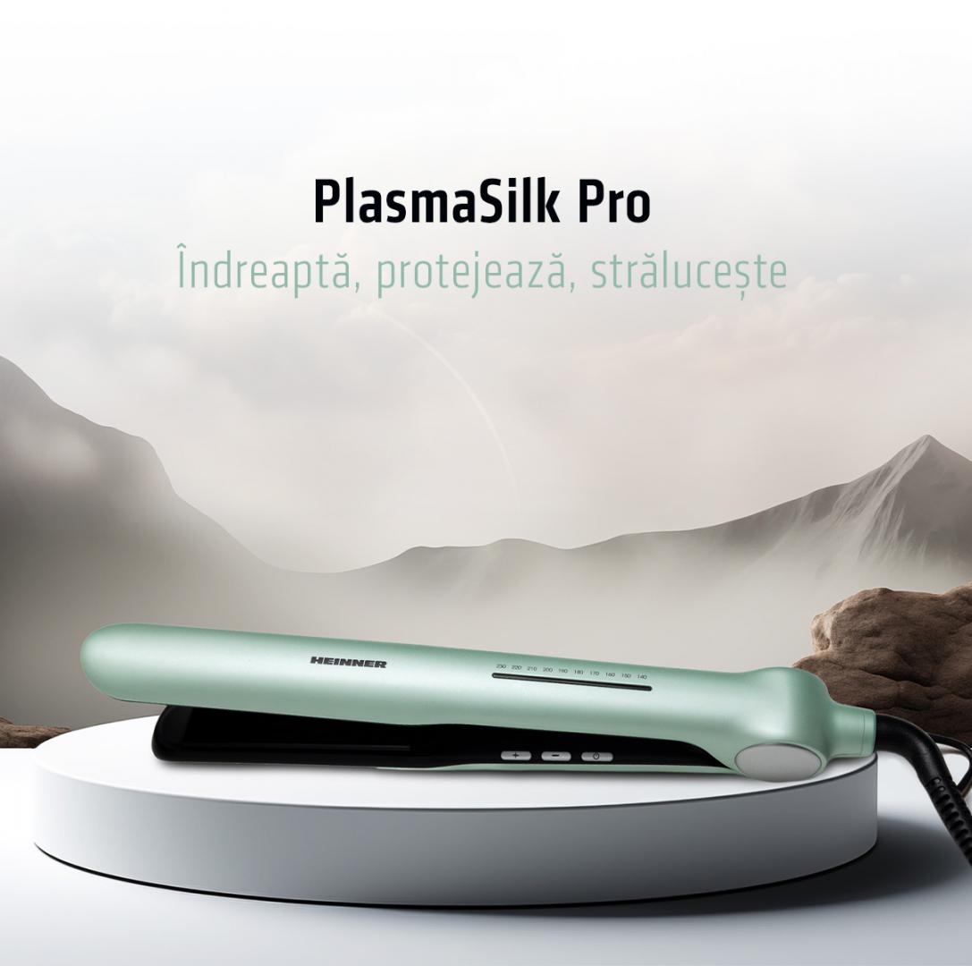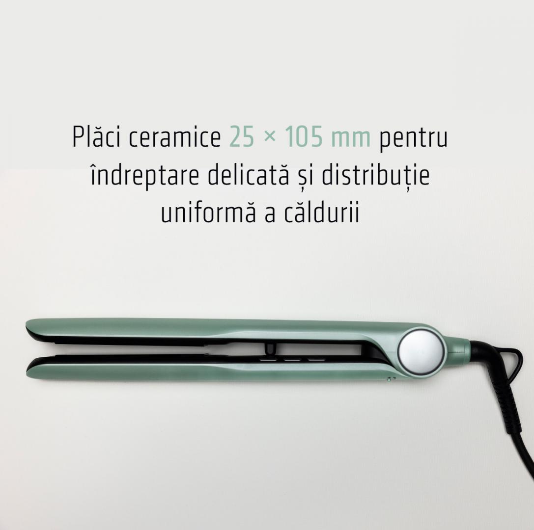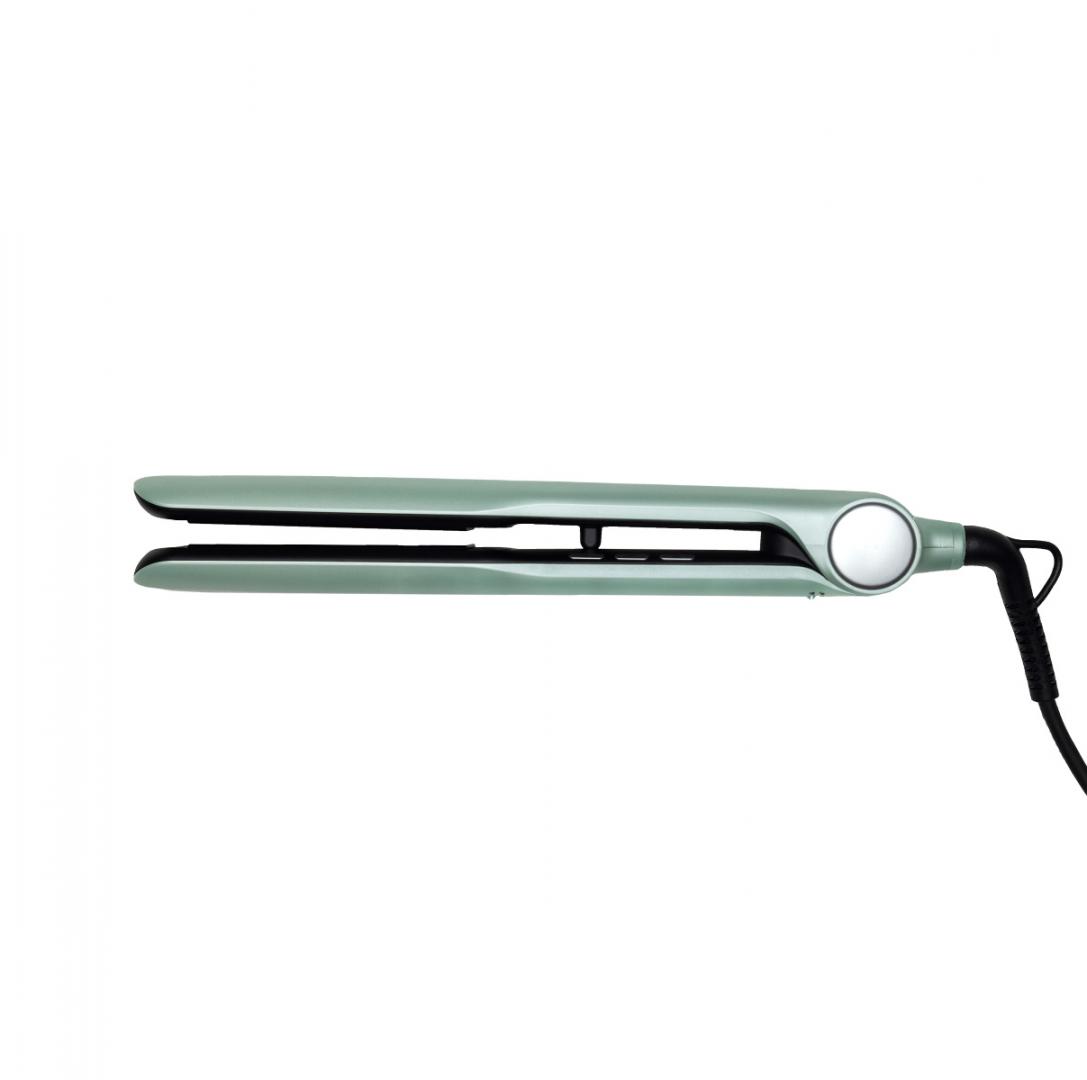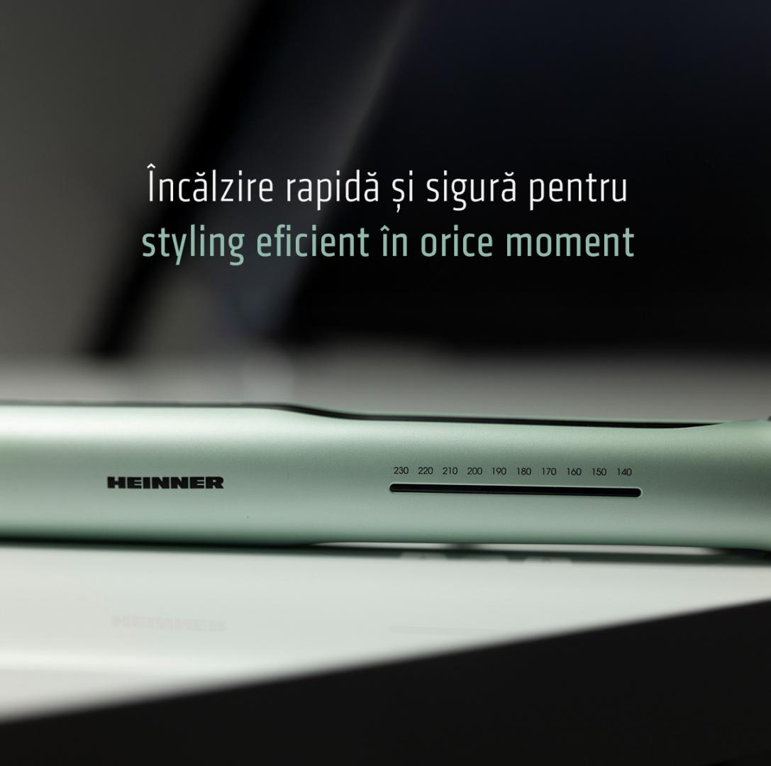 Heinner hair straightener HHS-Y230DP-GR, plasma function – reduces static and maintains hair hydration, ceramic coated plates: 25 x 105 mm, LED indicator, fast and safe heating, precise temperature control, temperature setting: 140℃ – 230℃, automatic shutdown after 1 h, plate lock function, power: 53 W, color: green