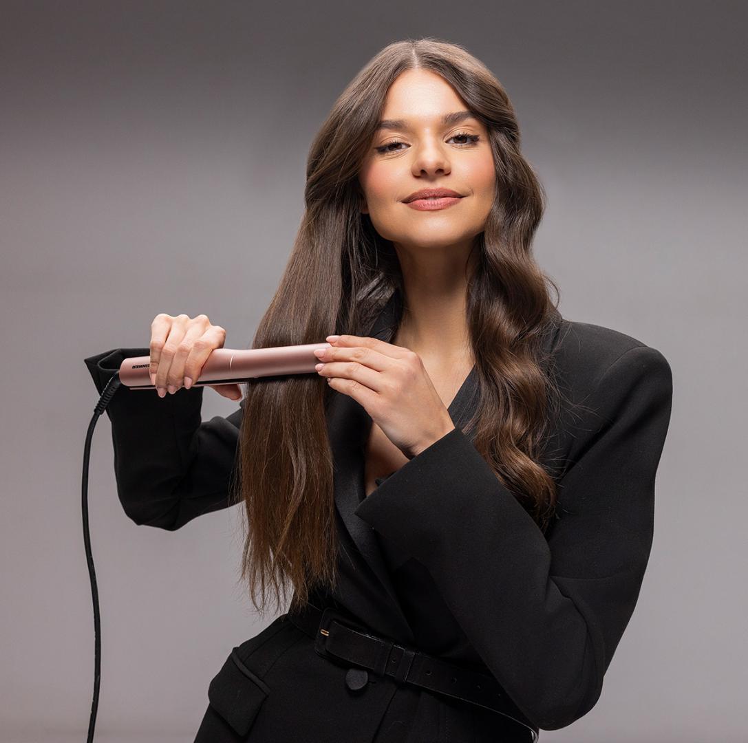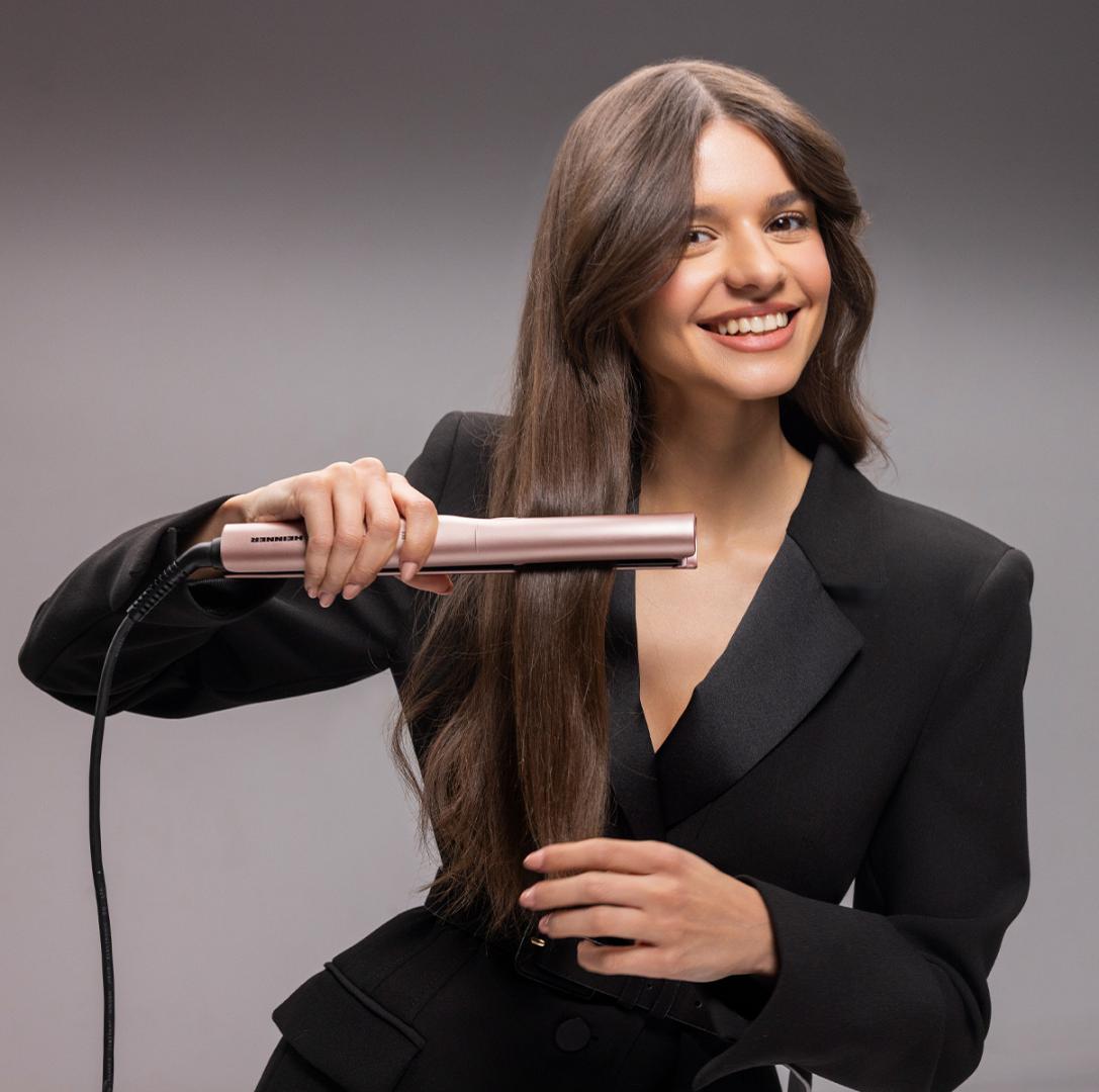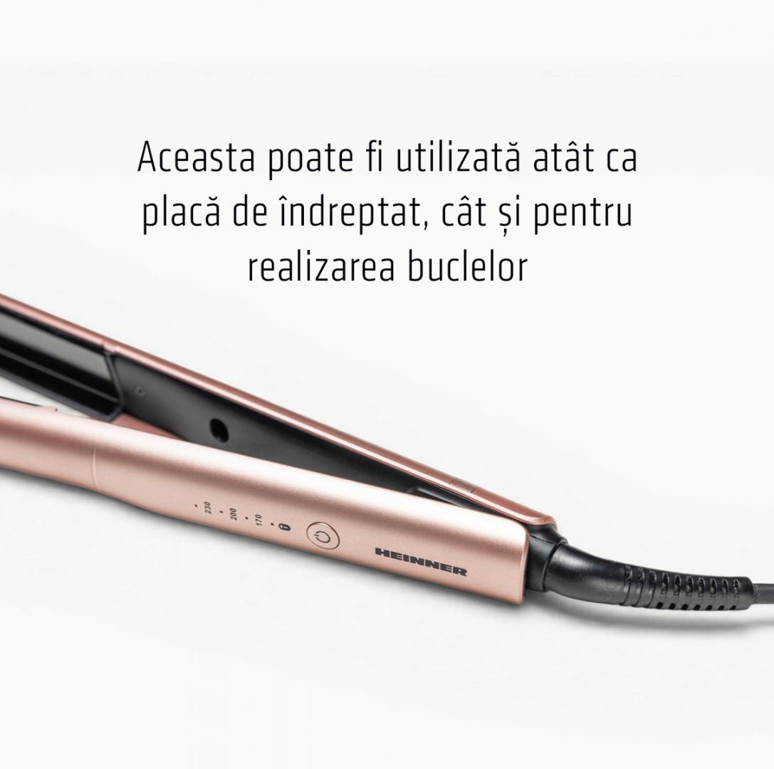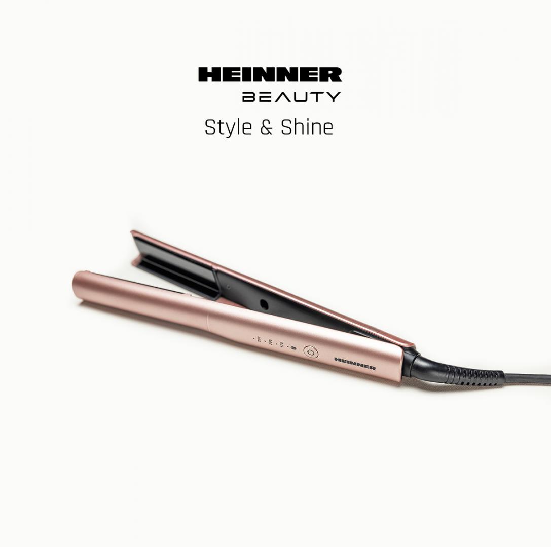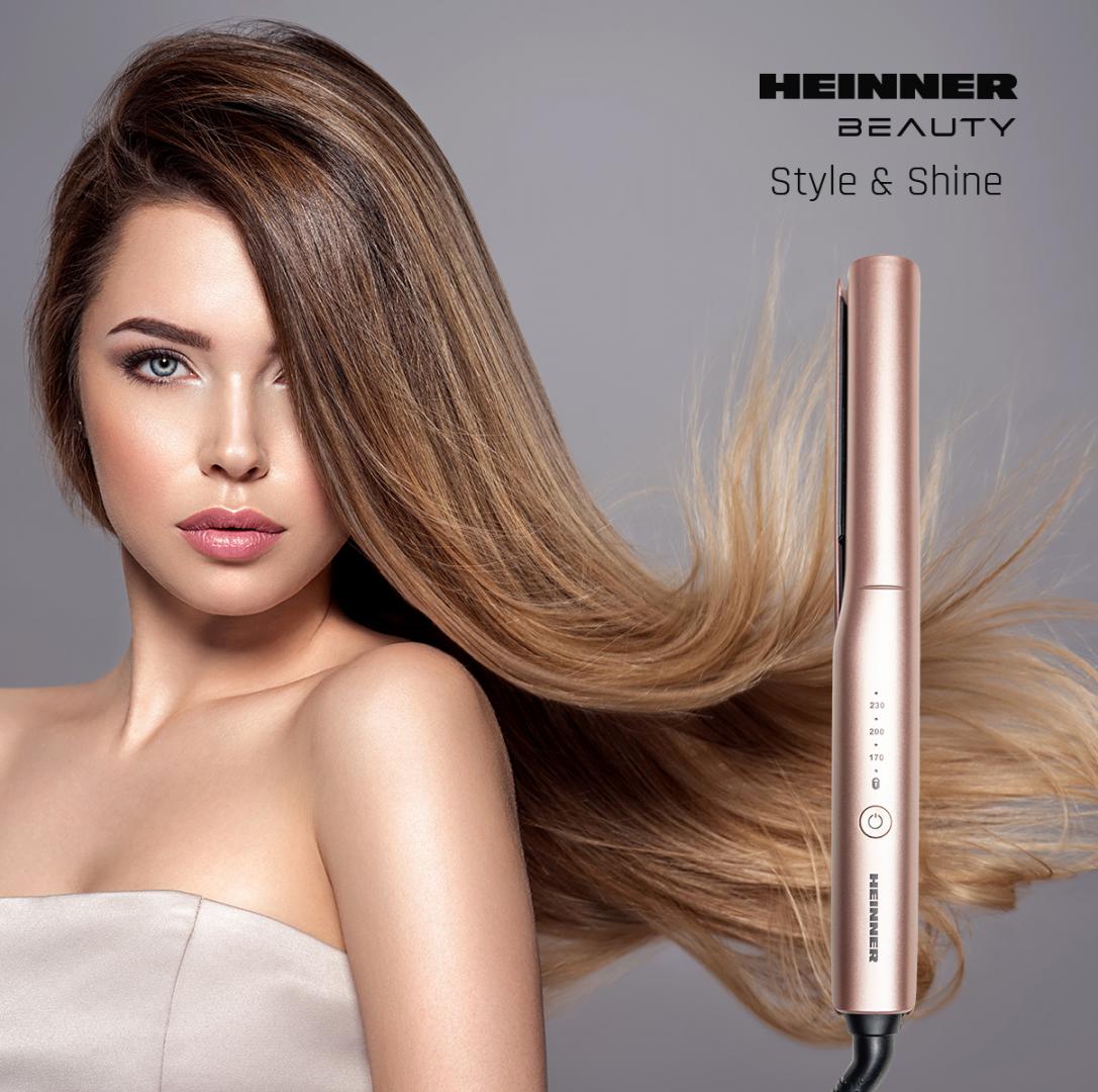 Heinner HHS-Y230SC-PNK hair straightener, ceramic coated plates: 26 x 90 mm, LED indicator, fast and safe heating, temperature control, temperature setting: 170℃/200℃/ 230℃, plate lock function, power: 52 W, color: pink