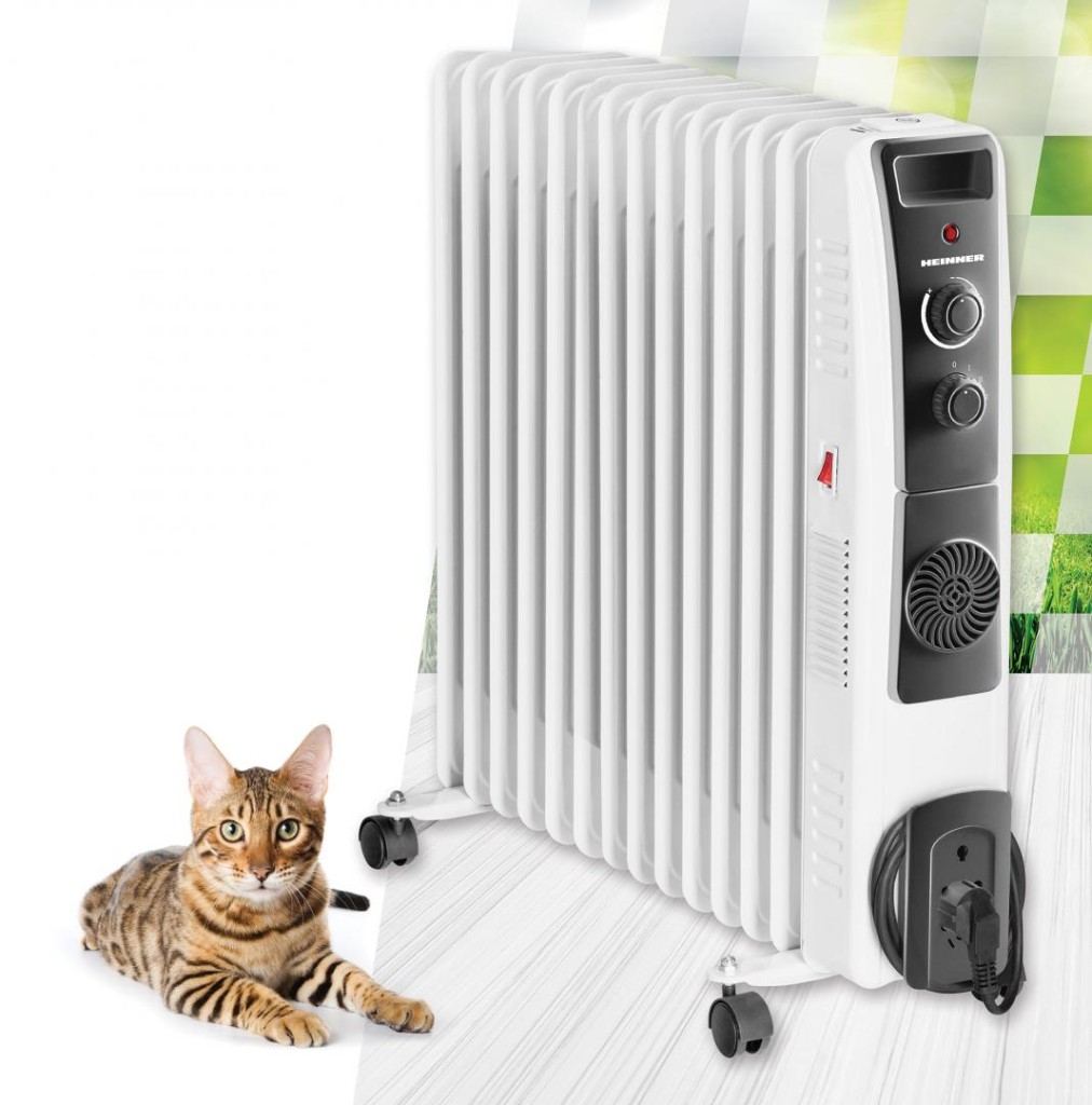 Heinner HOH-YV13BK oil radiator, 13 elements 125 x 580 mm, 3 temperature settings: 1000/1500 / 2500W, Turbo fan 400W, overheating protection, adjustable thermostat, indicator light, wheels for easy operation