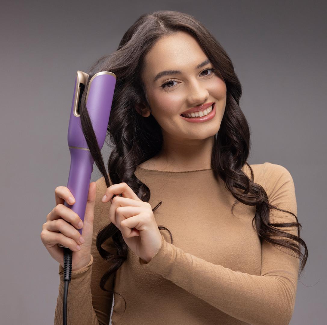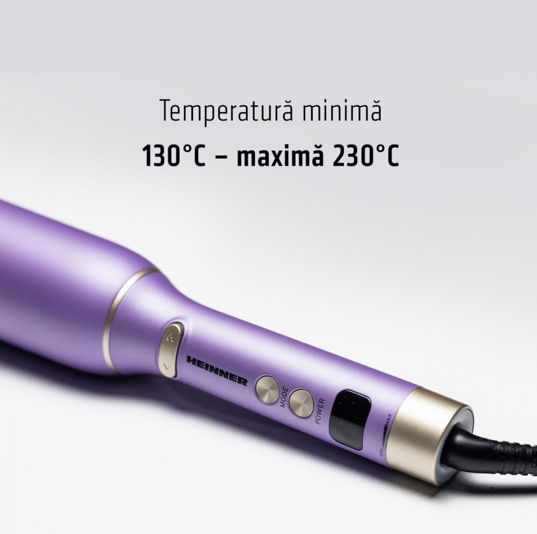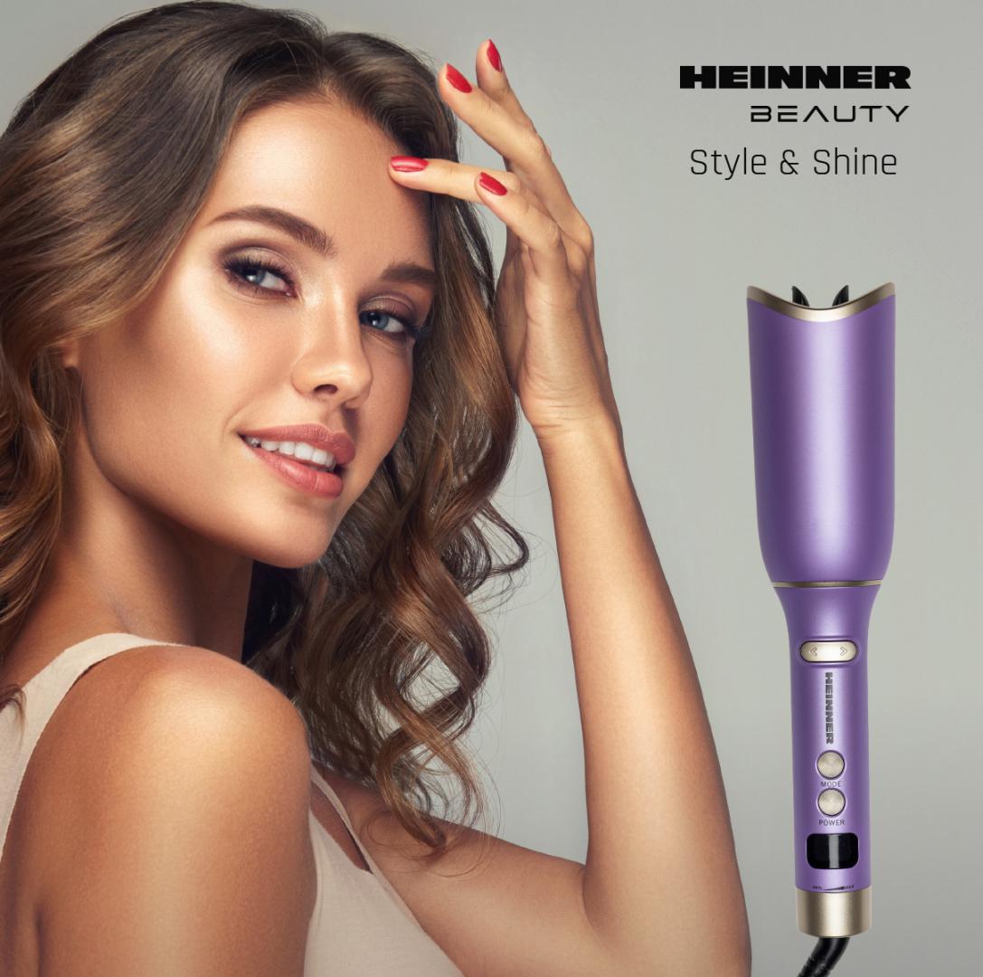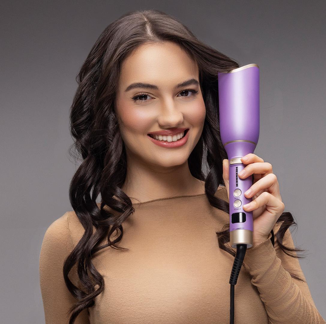 Heinner HTC-YD230PP automatic curler, digital display, cylinder dimensions: 25 x 51.5 mm, ceramic coated cylinder, fast and safe heating, precise temperature control, 2 in 1 control for setting temperature and styling time, timer + 6 temperature settings, minimum temperature: 130°C; maximum temperature: 230°C, curling direction: right, left, power: 25 W, color: purple