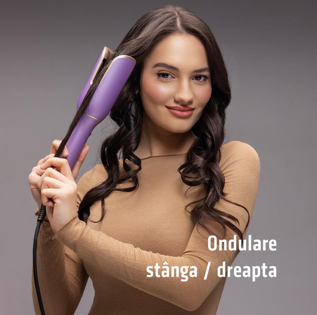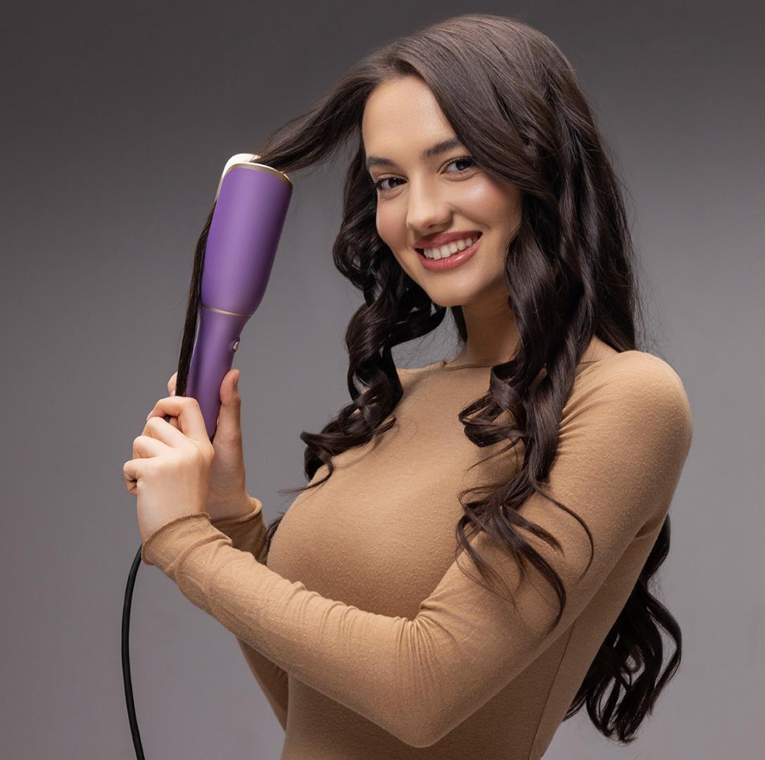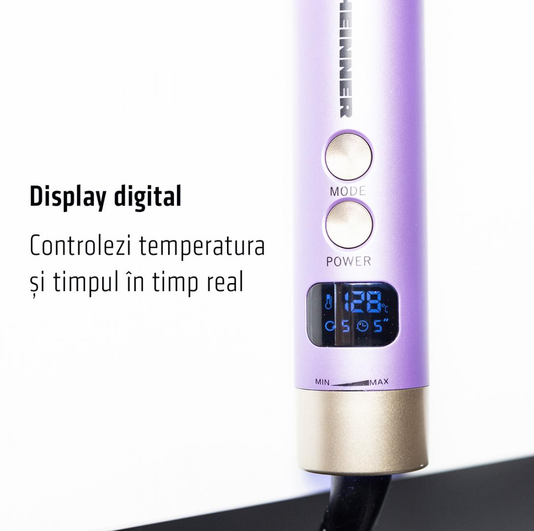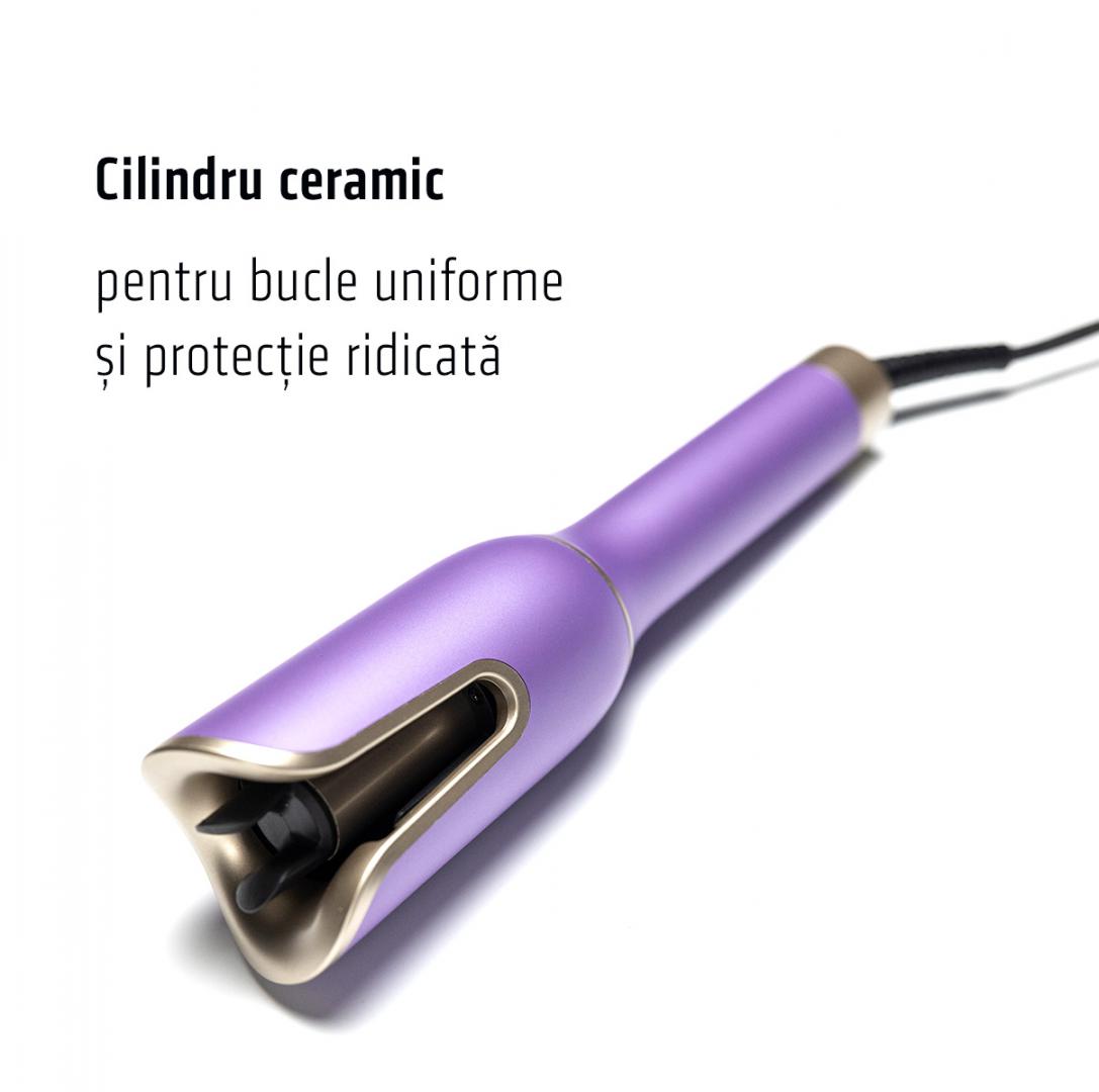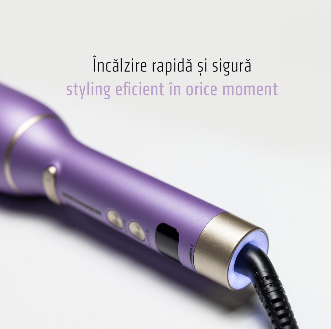Heinner HTC-YD230PP automatic curler, digital display, cylinder dimensions: 25 x 51.5 mm, ceramic coated cylinder, fast and safe heating, precise temperature control, 2 in 1 control for setting temperature and styling time, timer + 6 temperature settings, minimum temperature: 130°C; maximum temperature: 230°C, curling direction: right, left, power: 25 W, color: purple