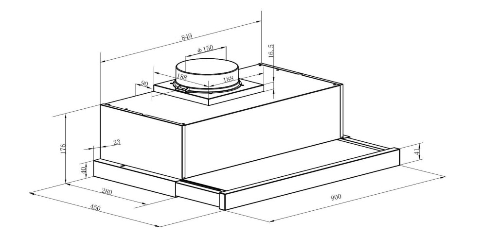 Heinner HTCH-490IX telescopic hood, maximum absorption power: 413.5 m3 / h, 3 gears, “on / off” buttons, motor: 1 x 105W, LED light: 1 x 2 W, 2 aluminum filters, exhaust pipe diameter: 150 mm, dimensions: 90 x (28 – 45) x 17.6 cm, color: stainless steel