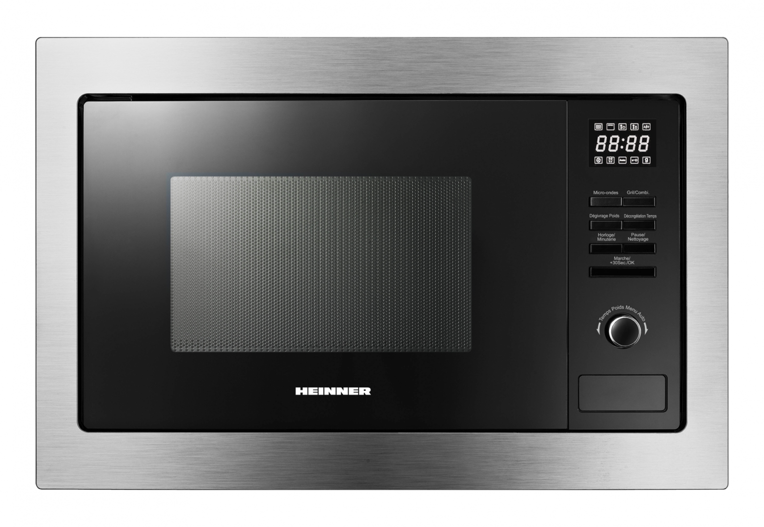 HEINNER BUILT-IN MICROWAVE OVEN HMW-MDBI25GDIX, 25L CAPACITY, DIGITAL CONTROL, DIGITAL DISPLAY, OVEN POWER: 900W, GRILL POWER: 1000W, 5 POWER LEVELS, 10 AUTOMATIC PROGRAMS, TIMER, MAXIMUM COOKING TIME 95 MIN, DEFROST FUNCTION, RAPID COOKING PROGRAM, SOUND SIGNAL AT THE END OF THE PROGRAM, TURNTABLE DIAMETER 315MM, DIMENSIONS (LXWXH): 59.5 x 40 x 38.8 CM, COLOR: STAINLESS STEEL/BLACK