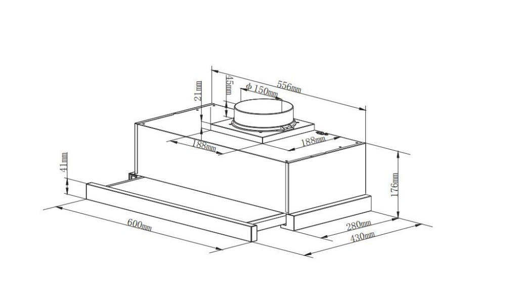 Heinner HTCH-440FS telescopic hood, 60×043 cm, air flow: 325 m3 / h, motor: 1 x 65W, lighting: 1 x 2.5W LED, 3-layer aluminum filters, external vent and recirculation, rocker switch, stainless steel panel, dimensions: 655 x 240 x 355 mm.