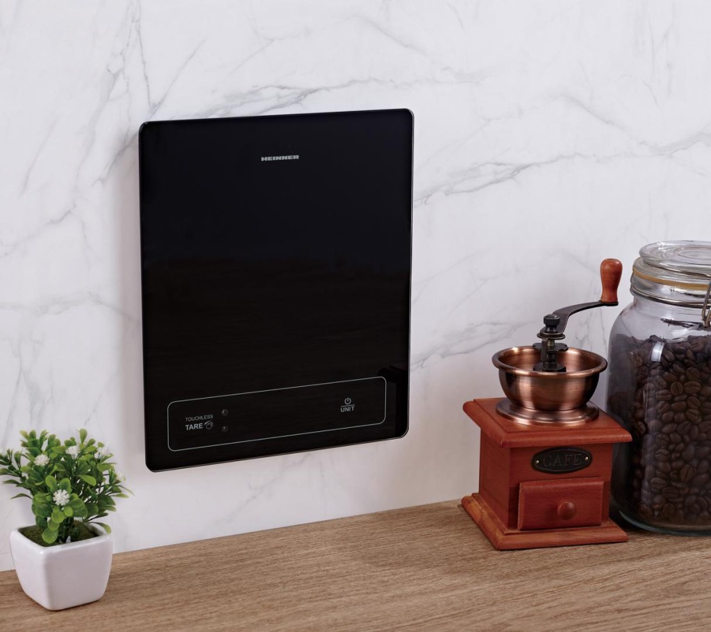 HEINNER HKS-SM15BK SMART KITCHEN SCALE, 15KG, 4MM SECURE GLASS, BLUETOOTH FUNCTION, LED DISPLAY, TOUCH CONTROL, TOUCHLESS TARE FUNCTION, GRADUATION: 1G, LIQUID WEIGHING FUNCTION, VERTICAL STORAGE DESIGN, BATTERIES: 3 X 1.5V AAA (NOT INCLUDED INCLUDED), BLACK