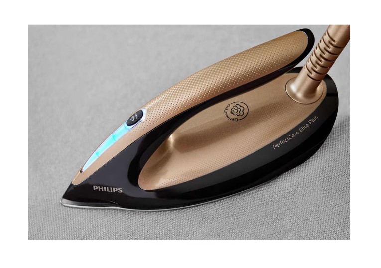 Ironing station with boiler Philips PerfectCare Elite Advanced GC9682/80, 2700W, T-ionicGlide soleplate, OptimalTemp technology, 8 bar, steam 165 g/min., steam jet 600g, tank 1.8L, descaling Easy De-Calc Plus, ironed silent, Gold/Black