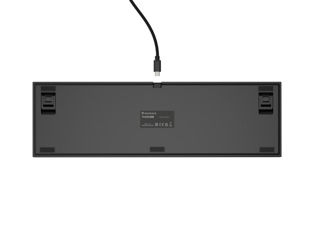 Genesis Thor 404 wired mechanical gaming keyboard, RGB lighting, Linear switch, Outemu Peach Silent V3 5-pin switch, number of keys 107, 11 multimedia buttons, cable length 1.8m, dimensions 439 x 133 x 41 mm, black